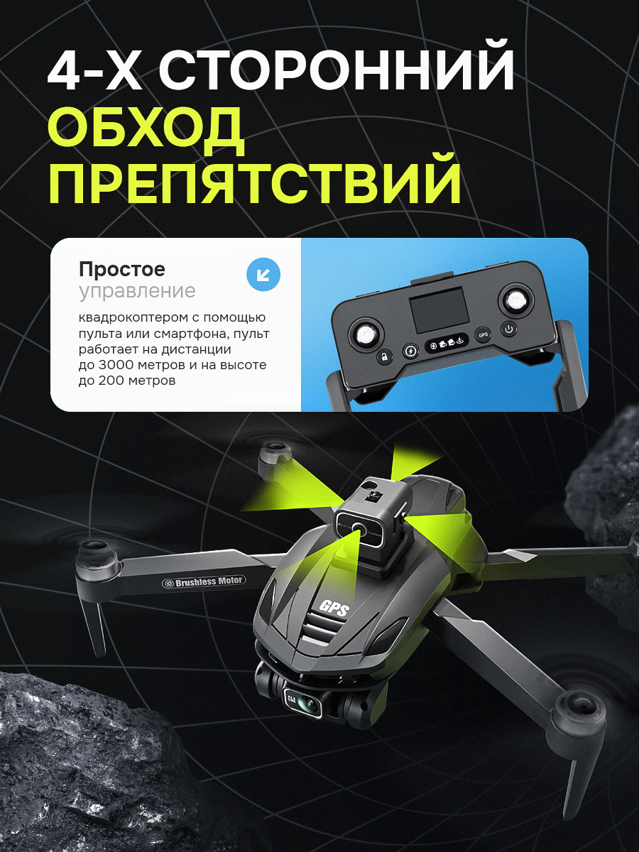 Квадрокоптер с GPS с камерой 8к дрон профессиональный V168 черный интересное: