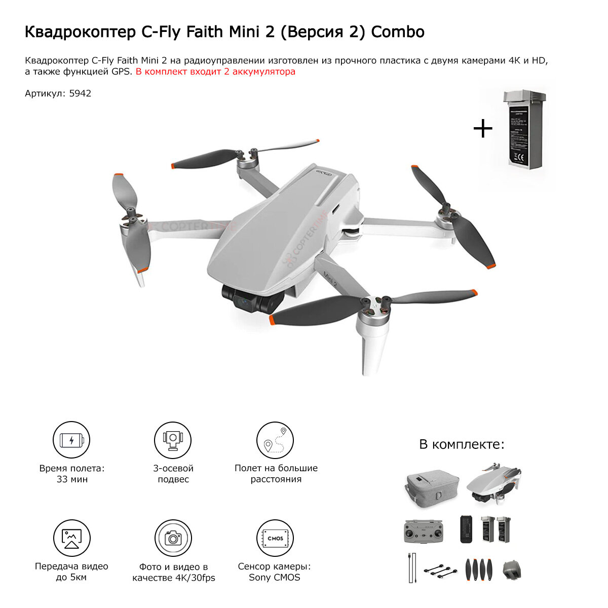 Квадрокоптер C-Fly Faith Mini 2 Combo (2 аккумулятора, белый) интересное: