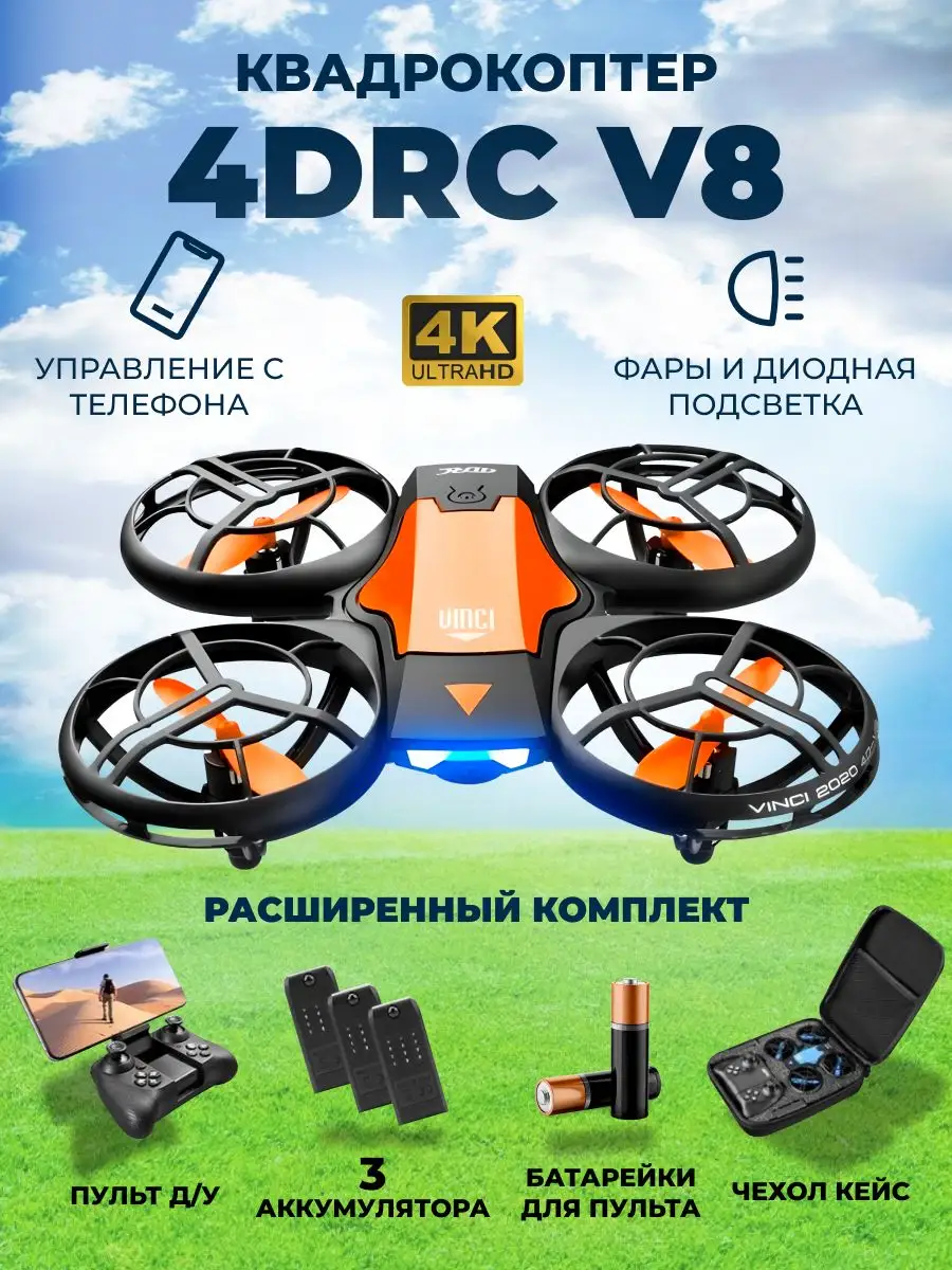 Квадрокоптер 4DRC V8 c камерой, детский, возврат одним нажатием, оранжевый интересное:
