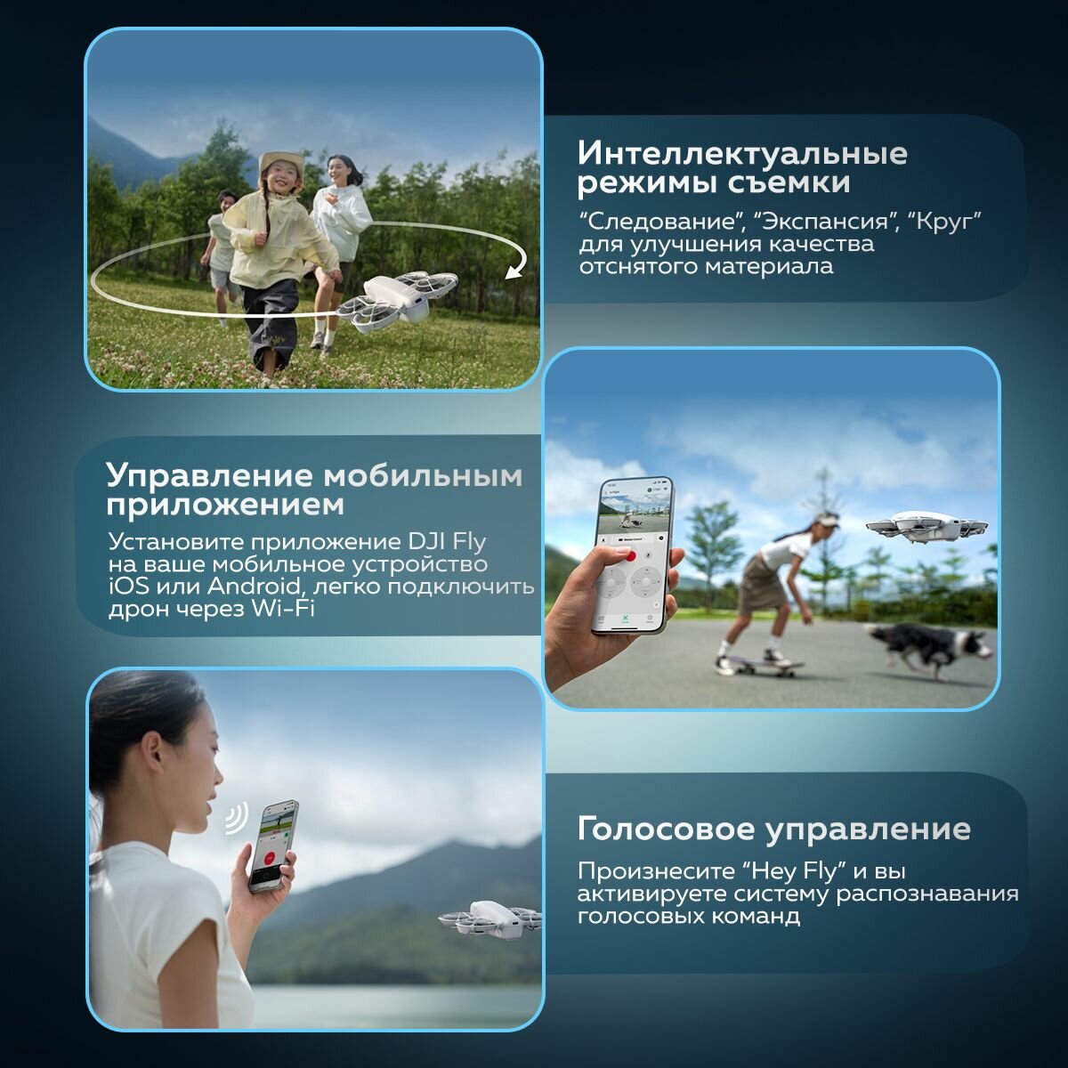 Квадрокоптер для аэрофотосъёмки DJI Neo, без пульта, дальность 7000м, 18мин, серый интересное: