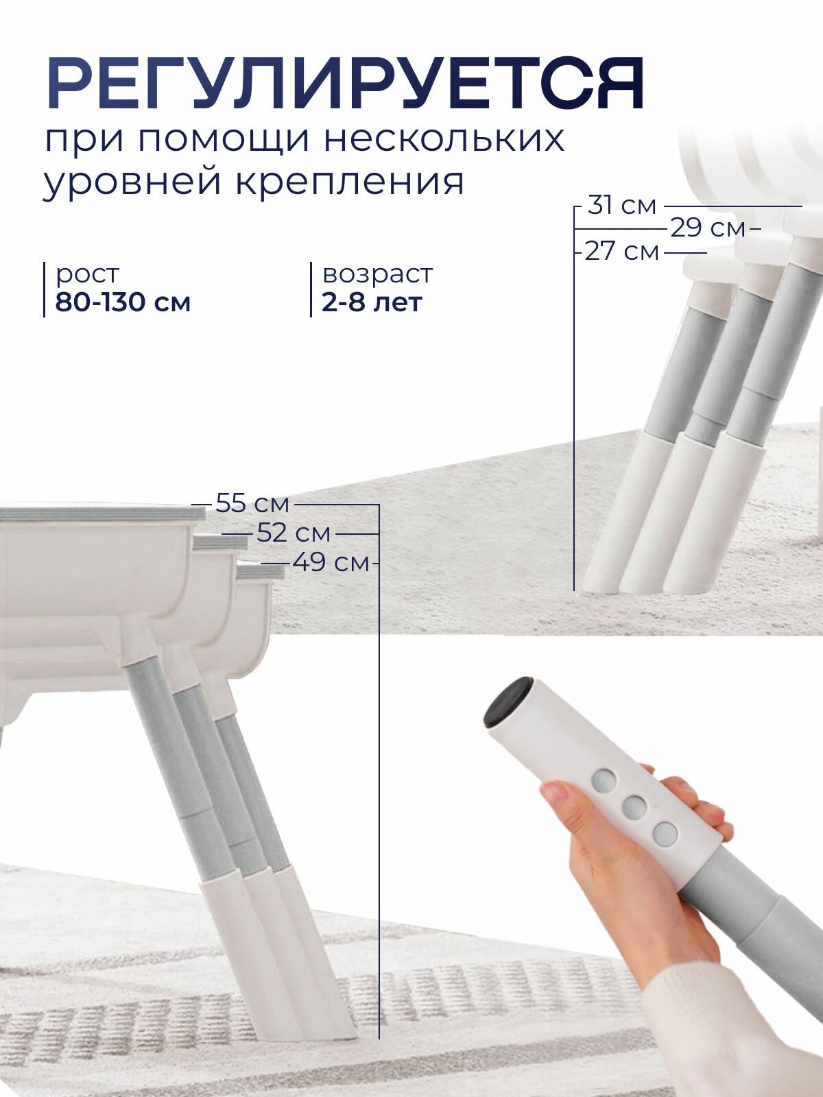 Растущая парта для школьника Rumbik Smart серая, детский деревянный письменный стол с регулировкой высоты