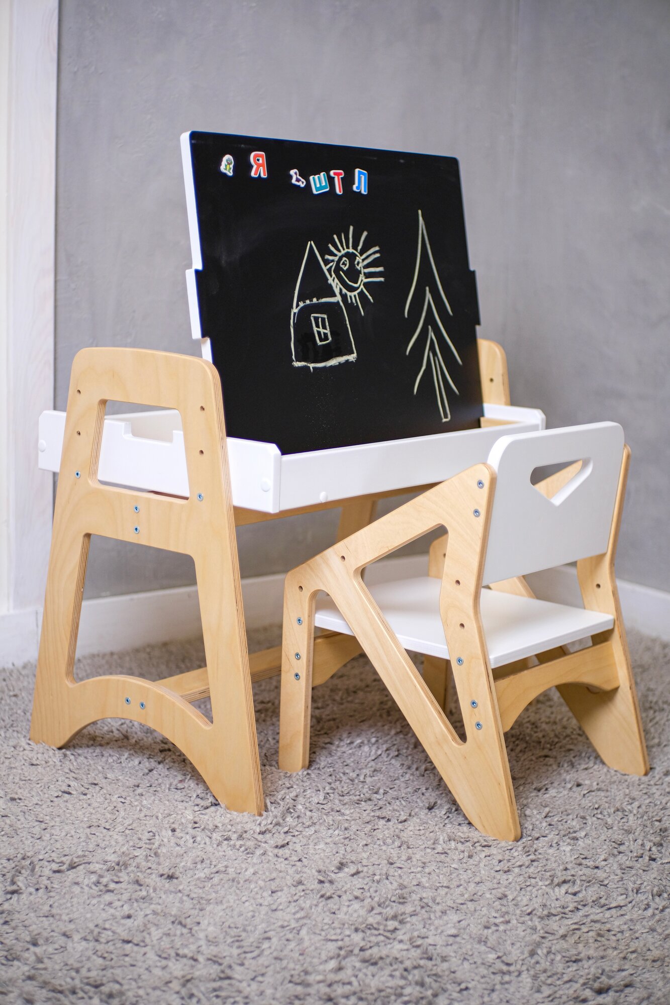 Купить Детский столик и стульчик растущие с магнитно-грифельным мольбертом