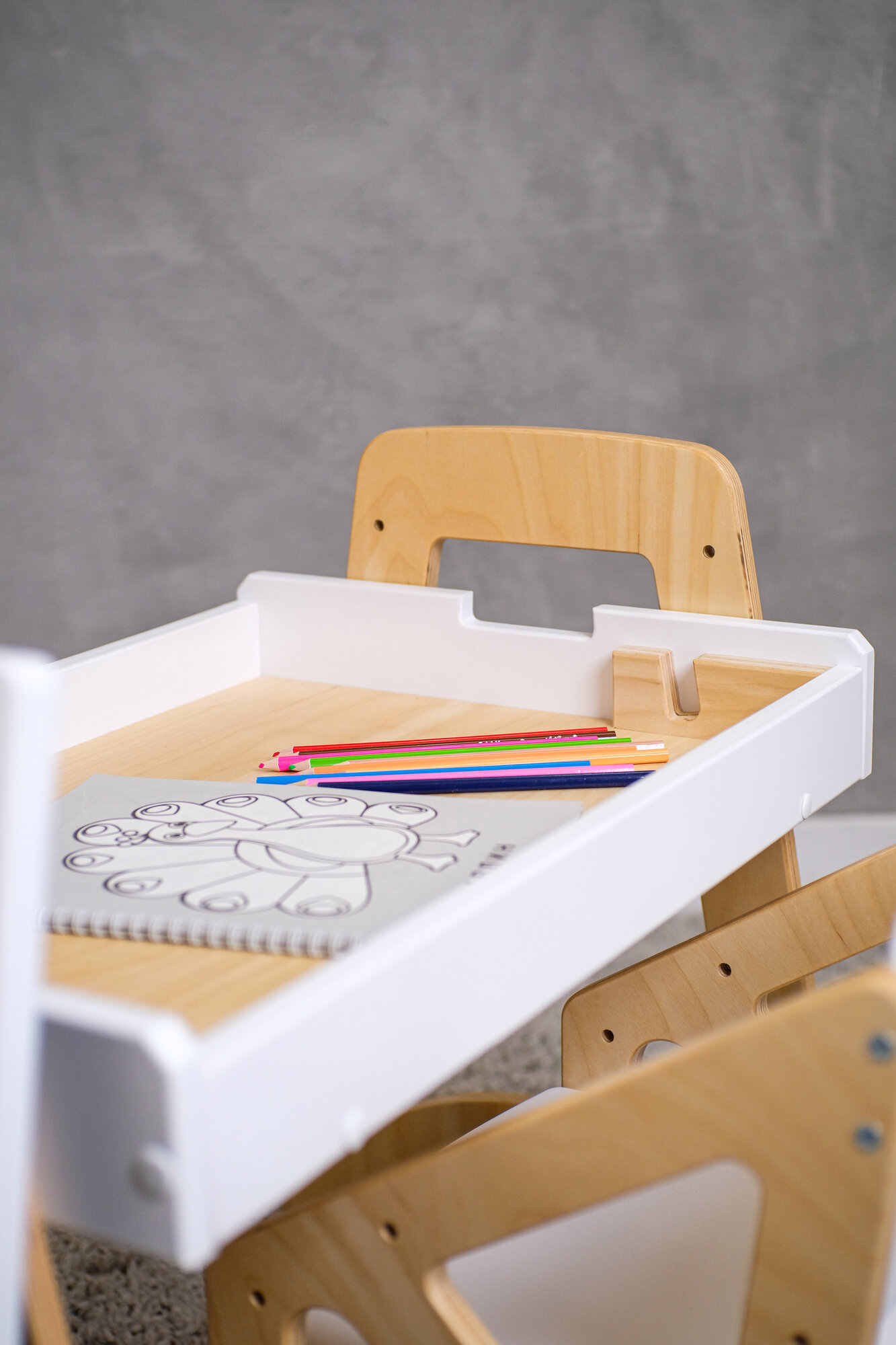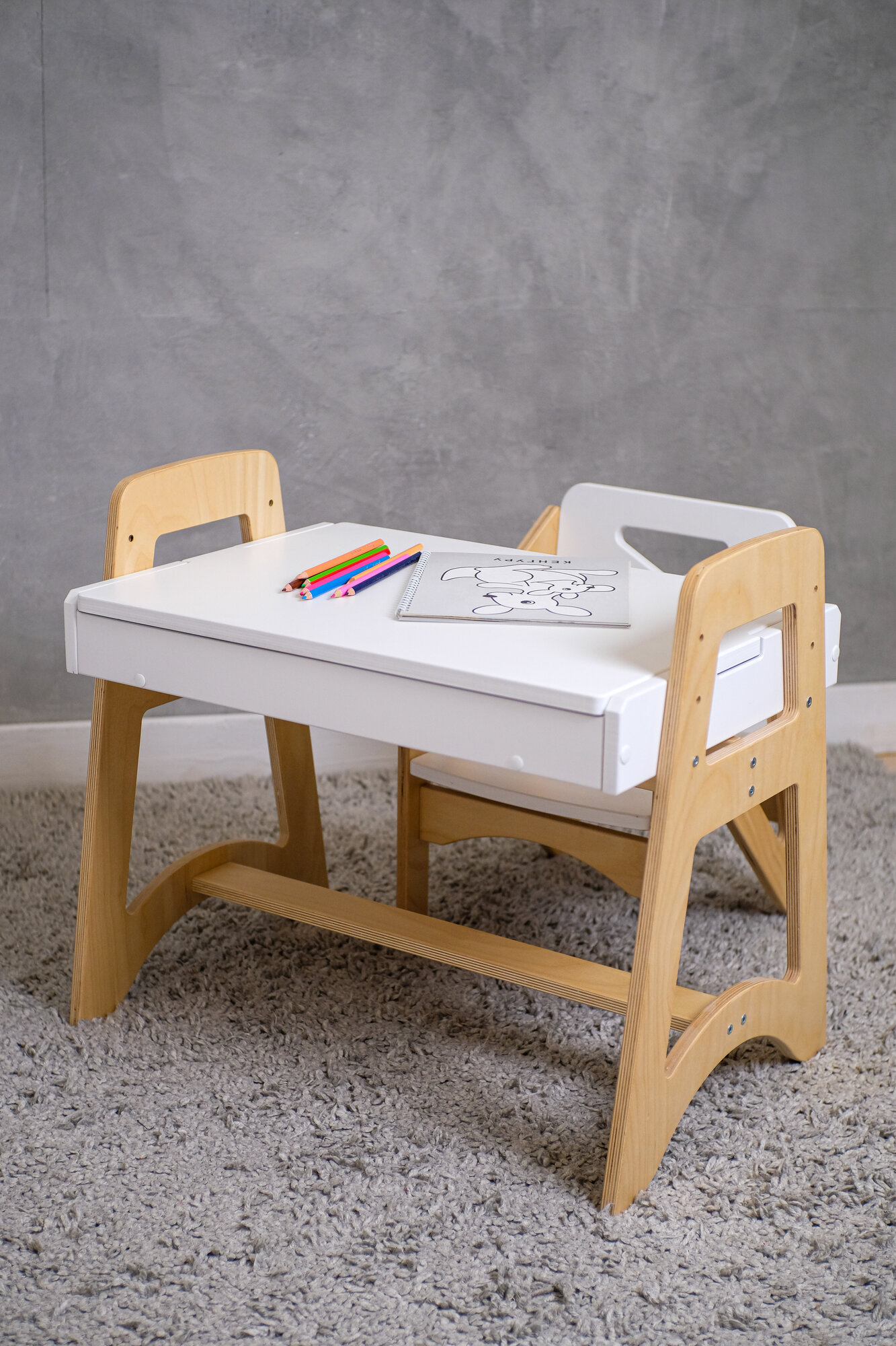 Растущая парта для школьника Rumbik Smart серая, детский деревянный письменный стол с регулировкой высоты