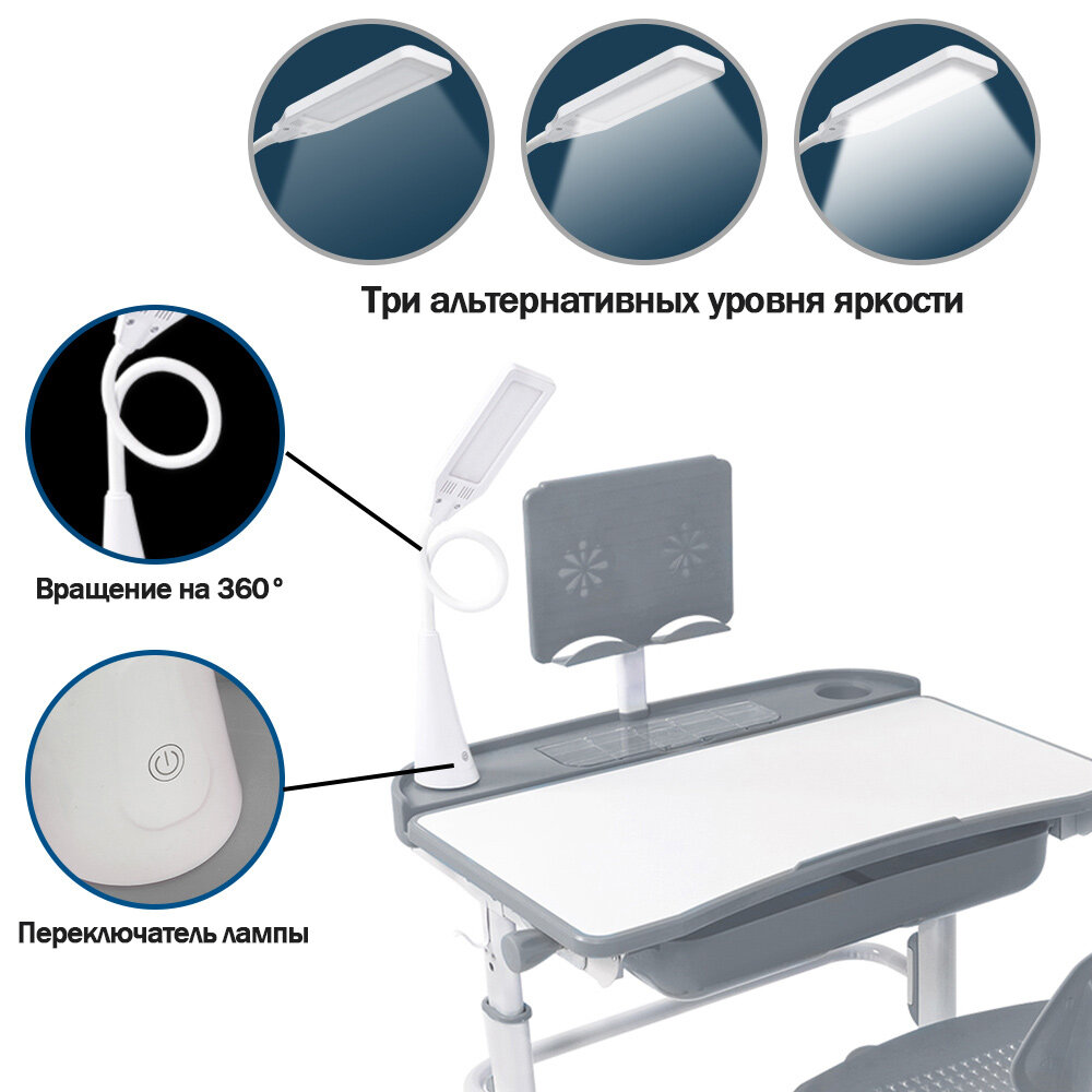 Растущая парта для школьника Rumbik Smart серая, детский деревянный письменный стол с регулировкой высоты