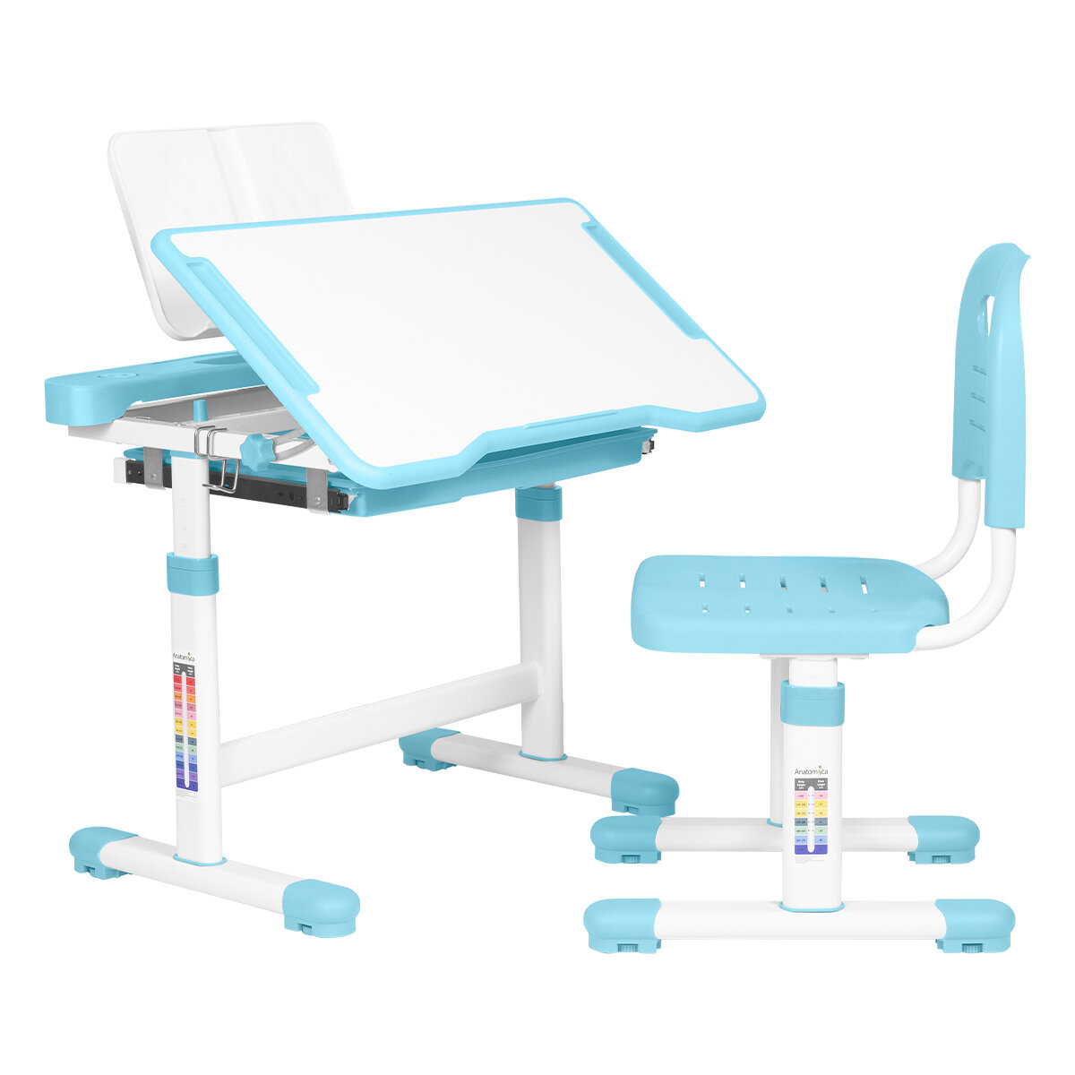 Купить Комплект Anatomica Vitera парта + стул + выдвижной ящик + подставка белый/голубой