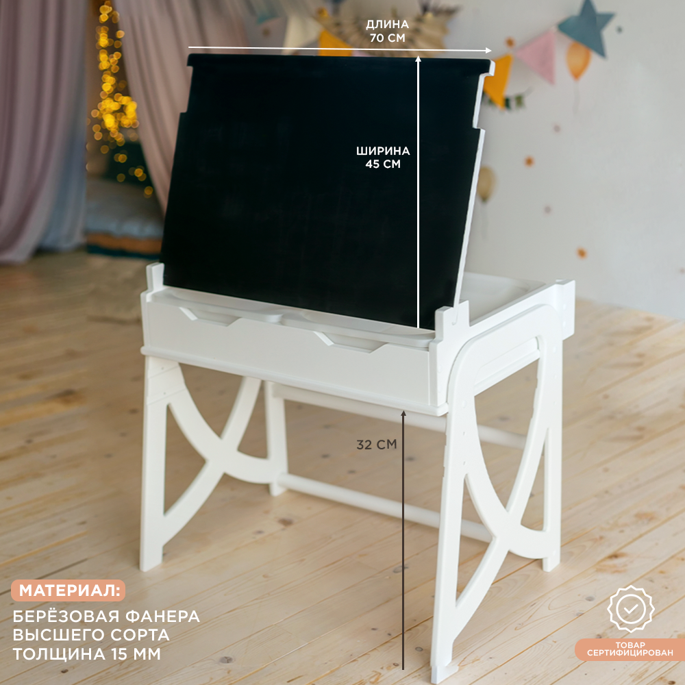 Растущий детский стол с грифельной доской и мольбертом, белый интересное: