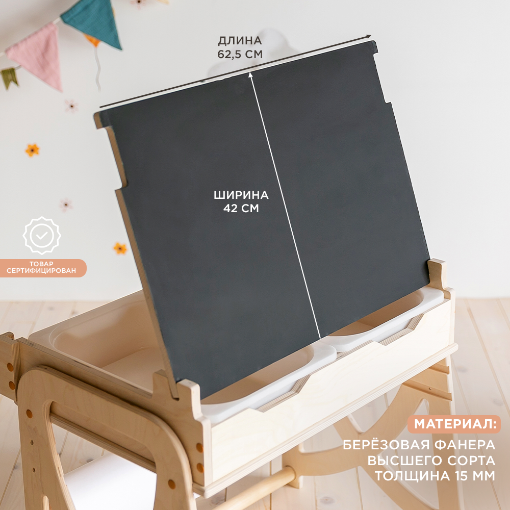 Купить Растущий детский стол с грифельной доской и мольбертом, натуральный