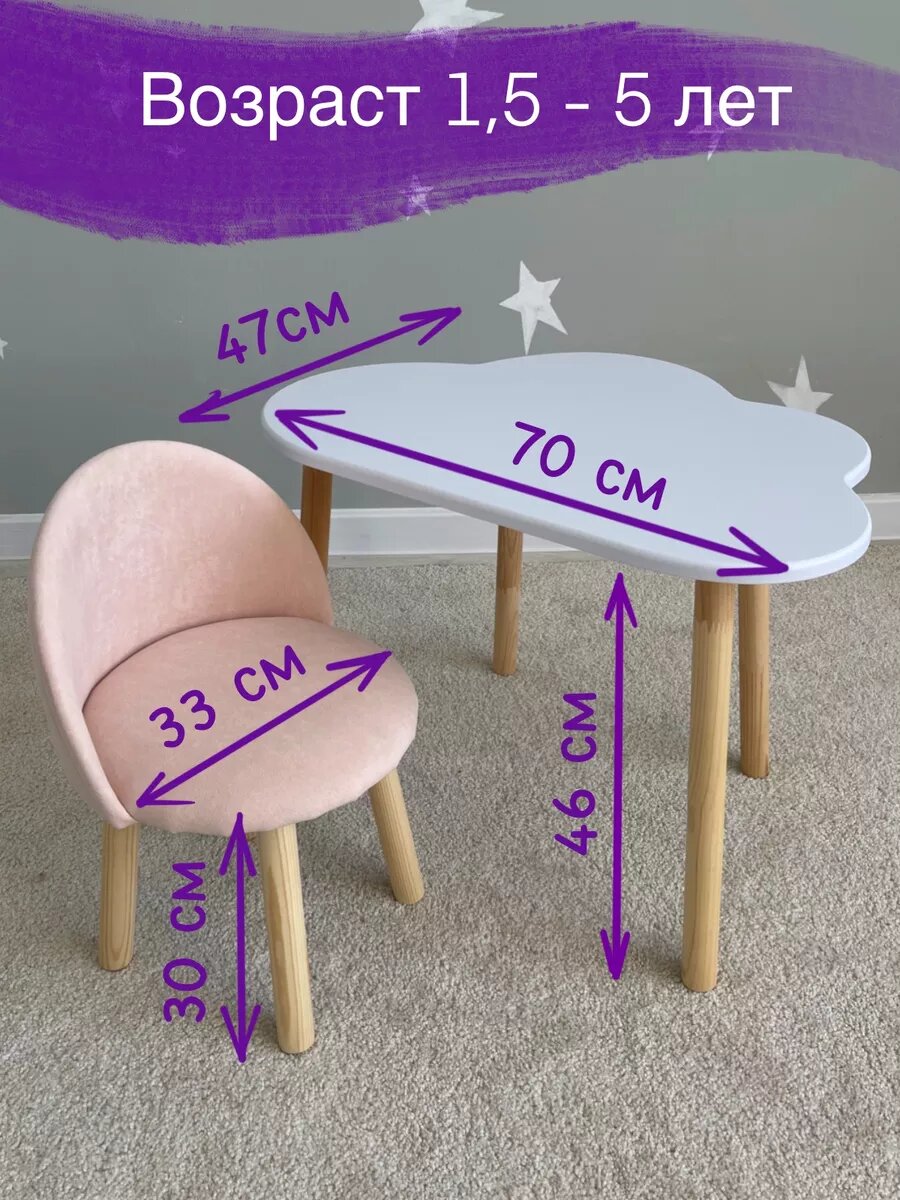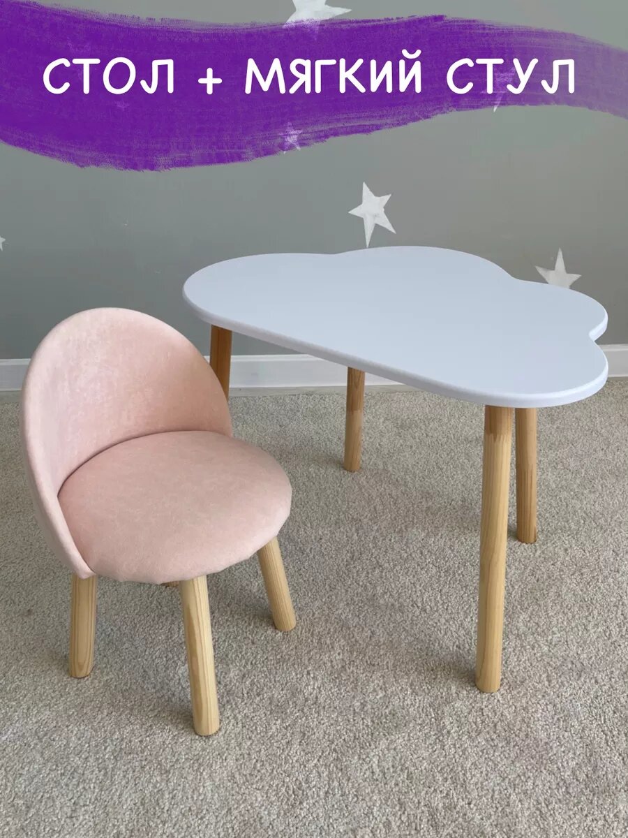 Детский Стол Облако Белый + мягкий Стул Велюр Розовый от DIMDOM kids интересное: