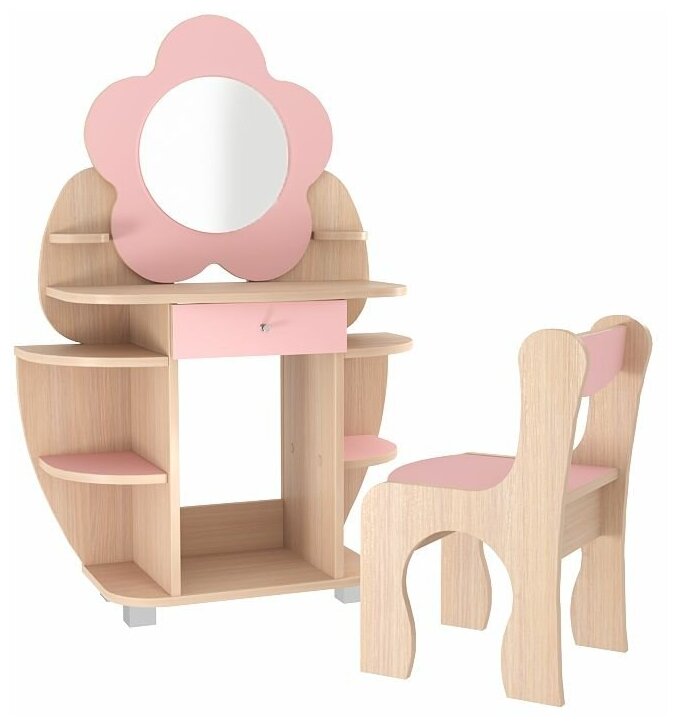 Купить Детский набор "Ромашка" для девочек, трюмо с зеркалом, ящиком и полками, цвет Дуб млечный/розовый, Mebelson