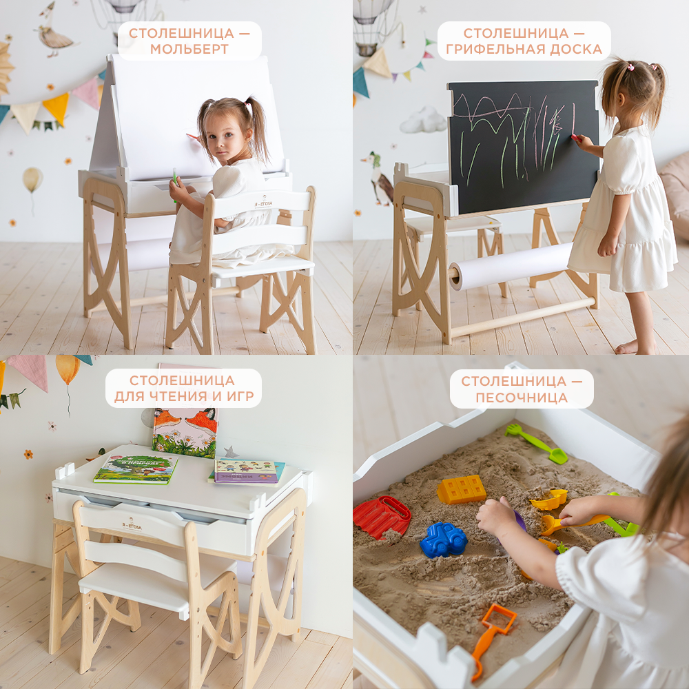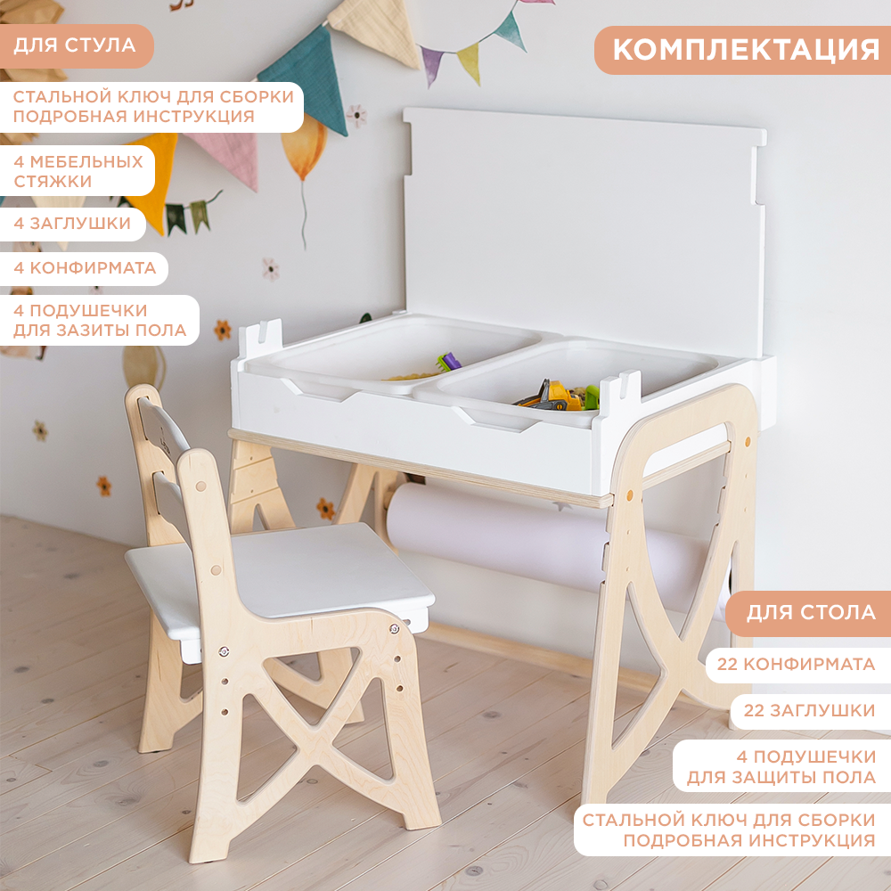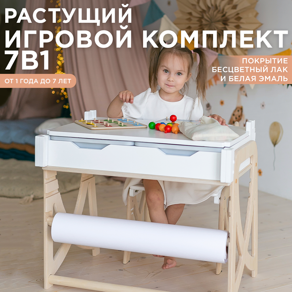Детский игровой стол и стул, растущие, с регулировкой высоты, бежевый/белый интересное: