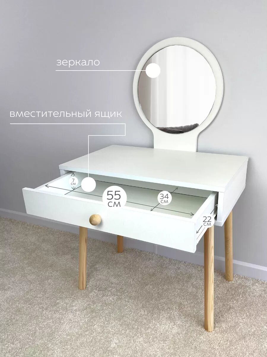 Детский туалетный столик Круг + стул Зайка от DIMDOM Kids, МДФ белый интересное:
