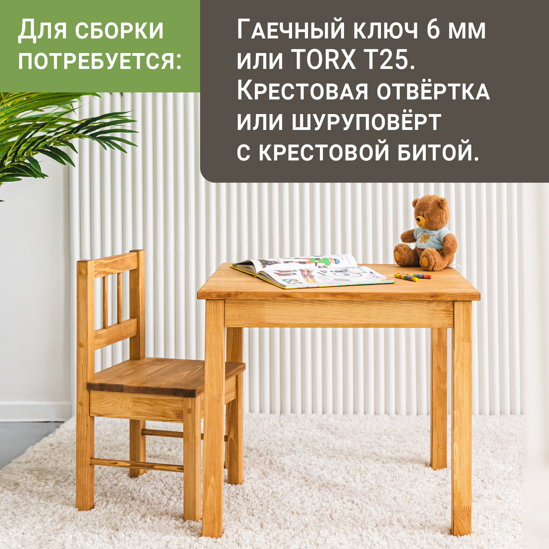 Детский стол и стул из дерева, неокрашенный