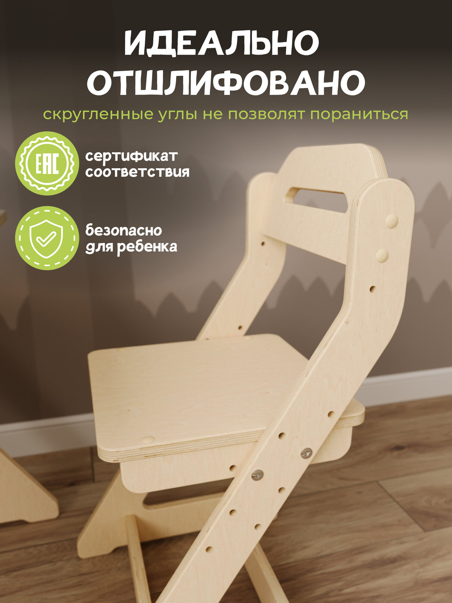 Купить Детский растущий комплект СТОЛ и СТУЛ от "Pappado", на рост от 105 до 155 см, шлифованный