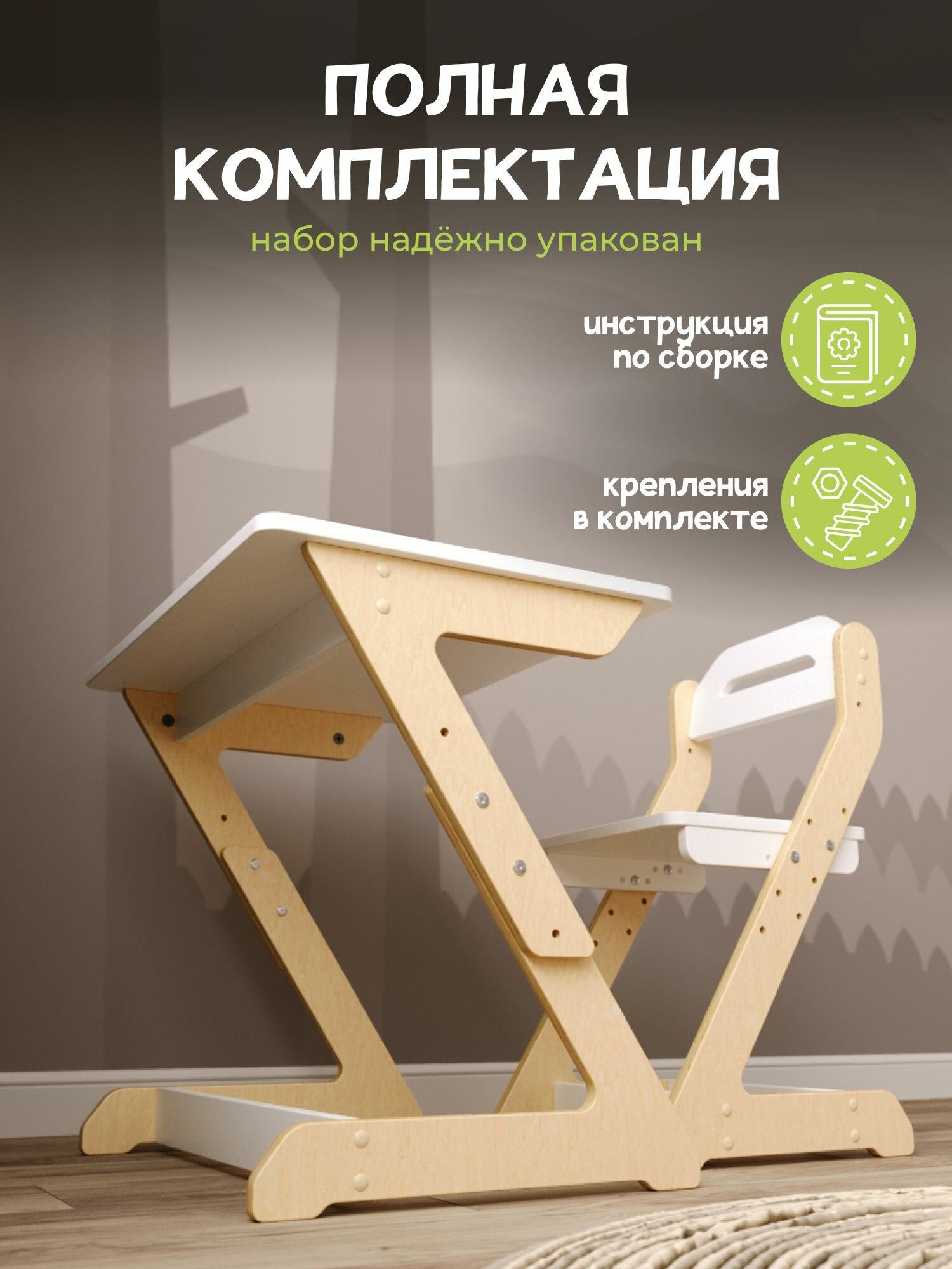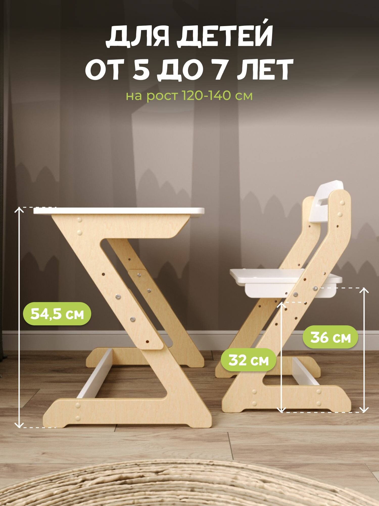 Купить Детский растущий комплект СТОЛ и СТУЛ от "Pappado", на рост от 105 до 155 см, цвет белый + лак