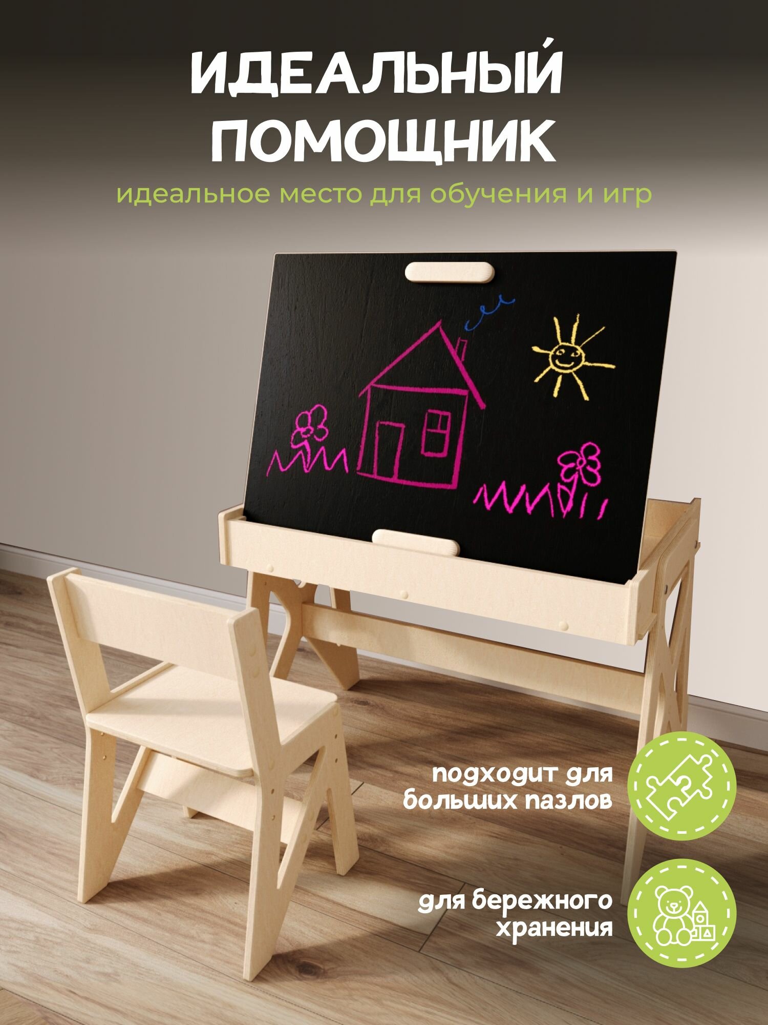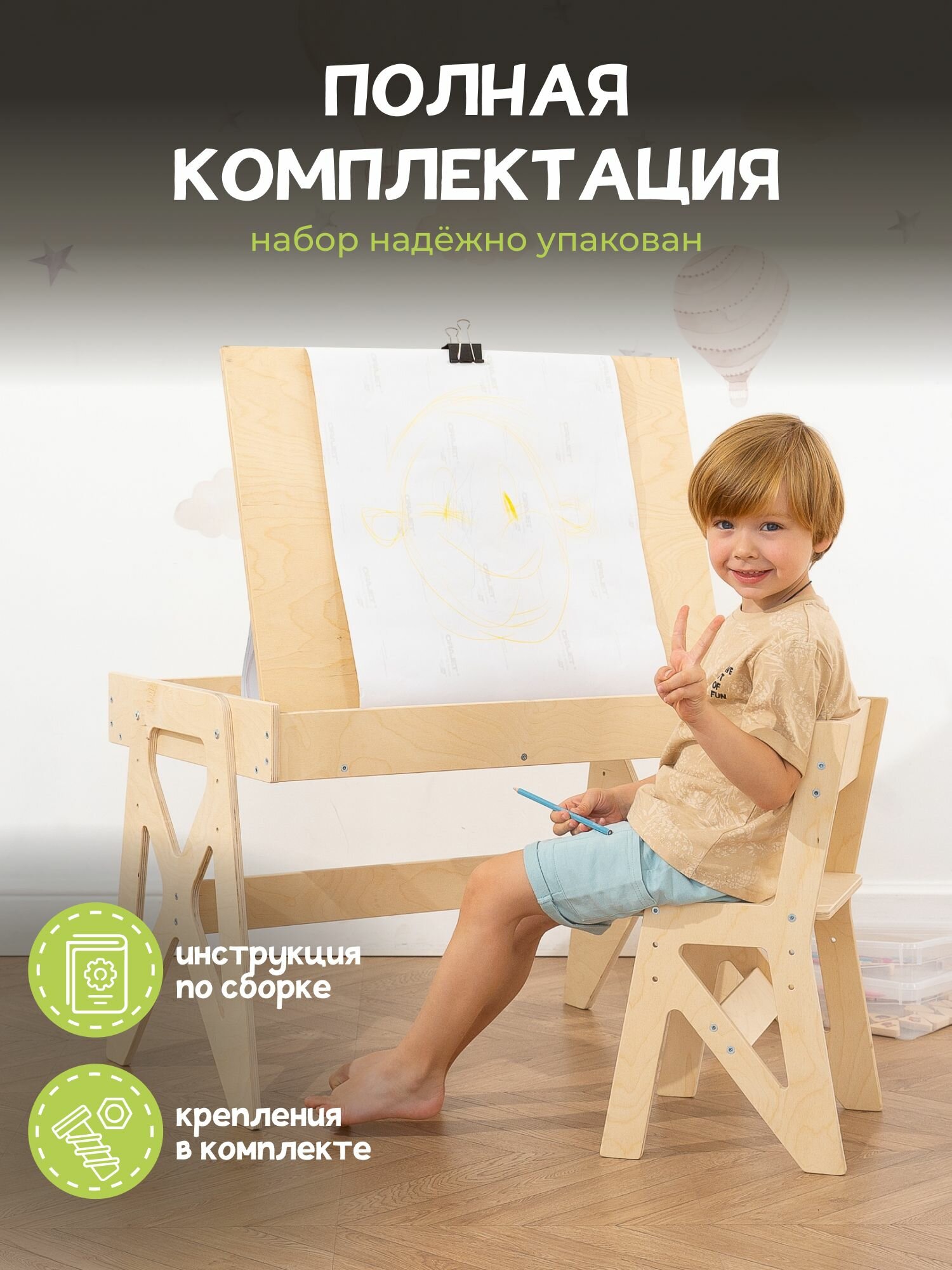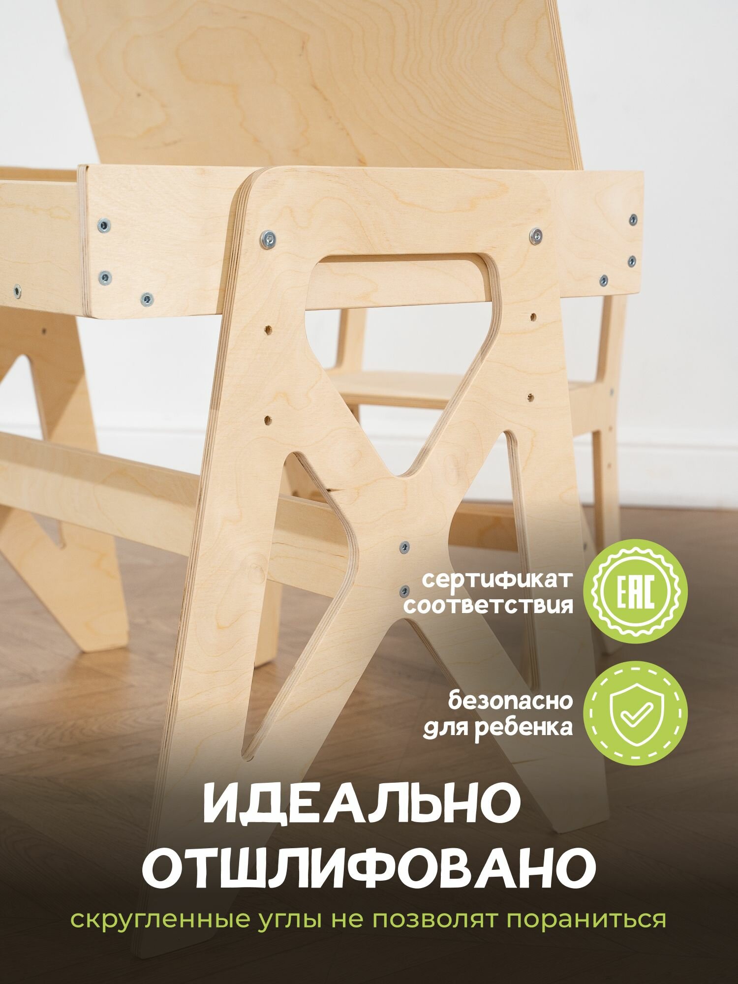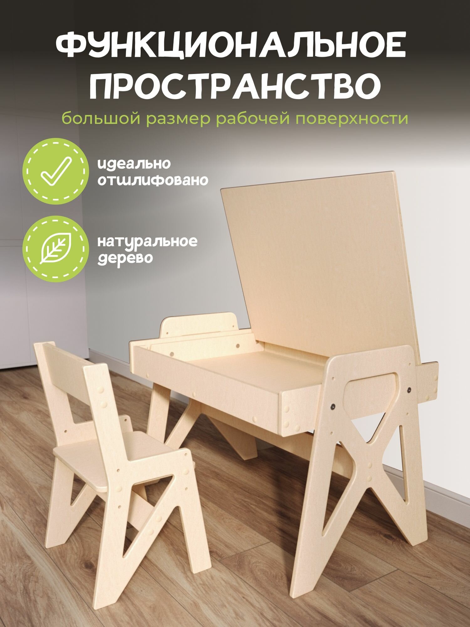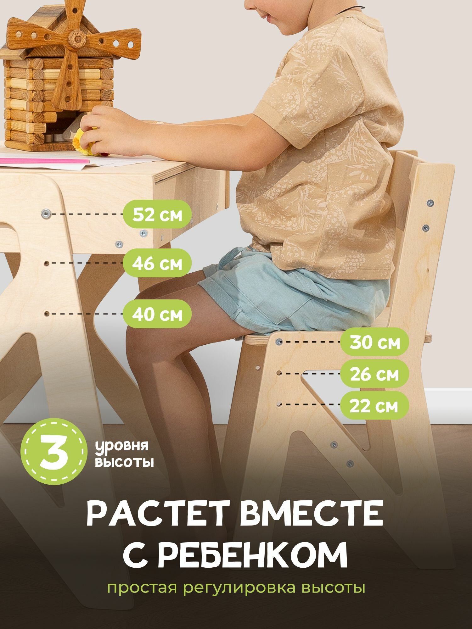 Детский растущий комплект СТОЛ и СТУЛ от "Pappado", на рост от 105 до 155 см, шлифованный