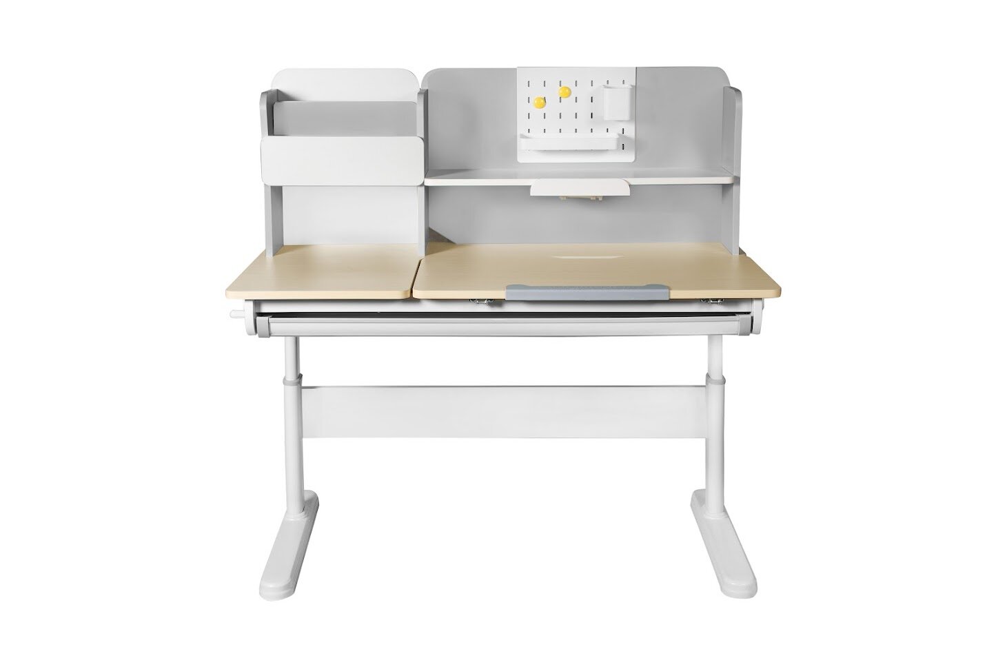 Растущая парта для школьника Rumbik Smart серая, детский деревянный письменный стол с регулировкой высоты