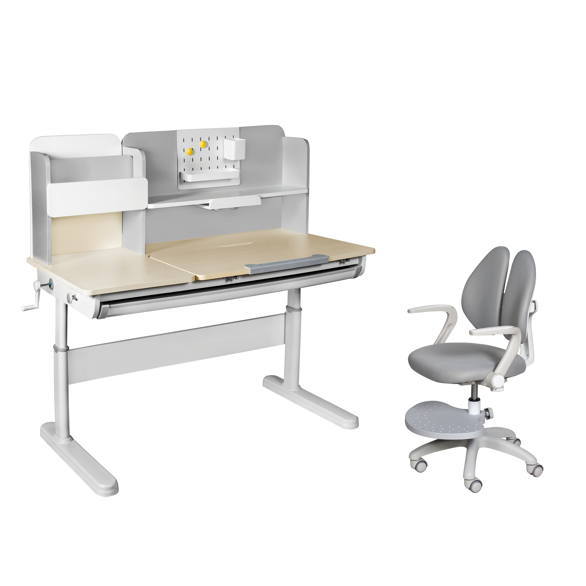 Купить Комплект парта Ginepro Grey + кресло Primo Grey с подлокотниками и подставкой