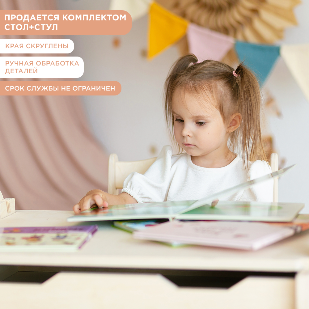Игровой комплект: стол и стул, растущая мебель, для детей от 1 года до 7 лет, натуральный