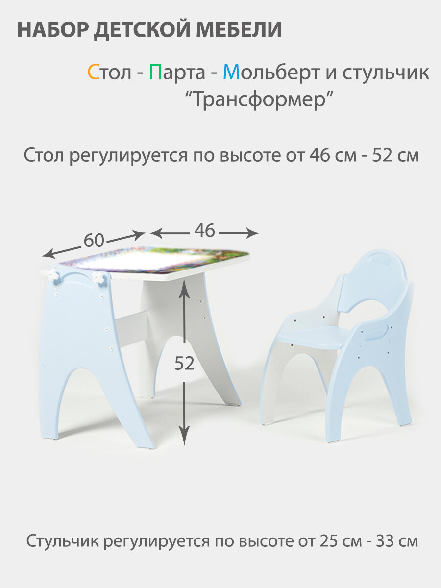 СохранитьРастущий набор детской мебели Стол - Парта - Мольберт и стульчик "Трансформер" цвет Голубой интересное: