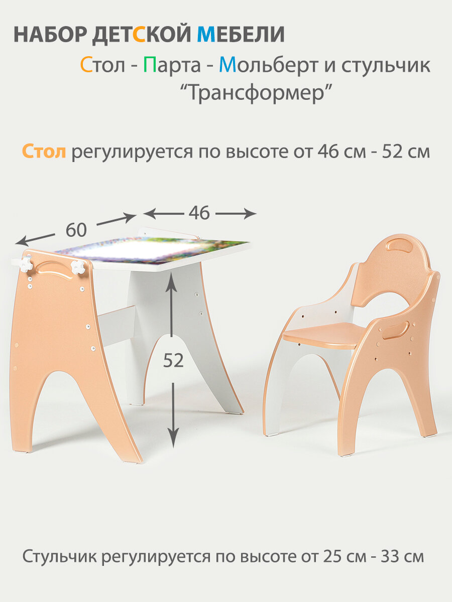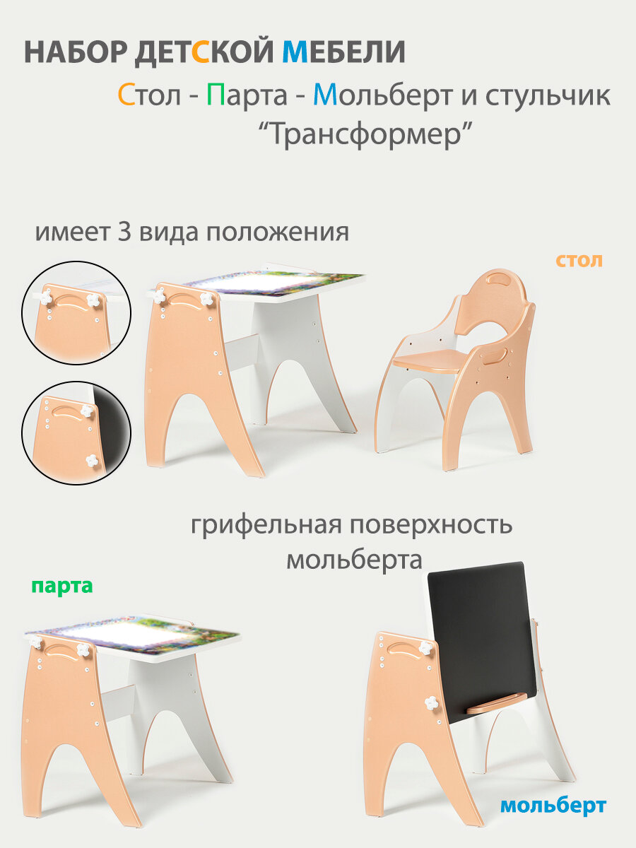 СохранитьРастущий набор детской мебели Стол - Парта - Мольберт и стульчик "Трансформер" цвет Персиковый интересное: