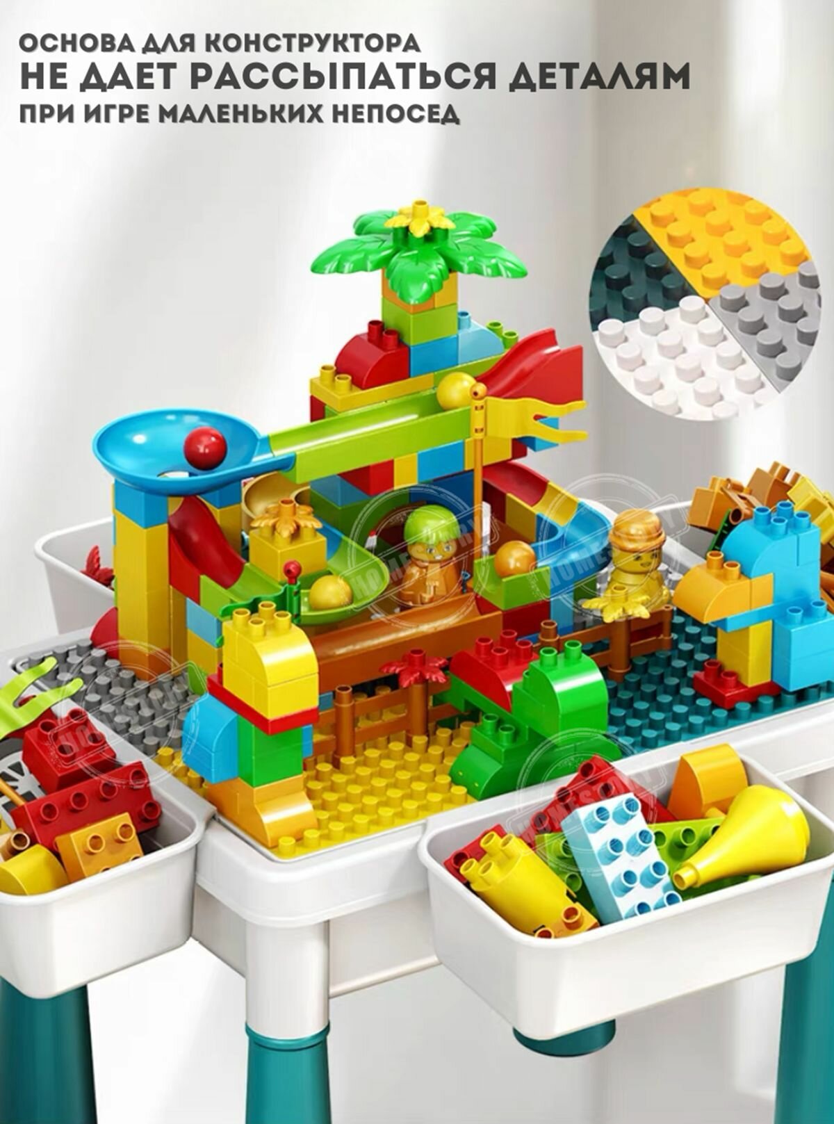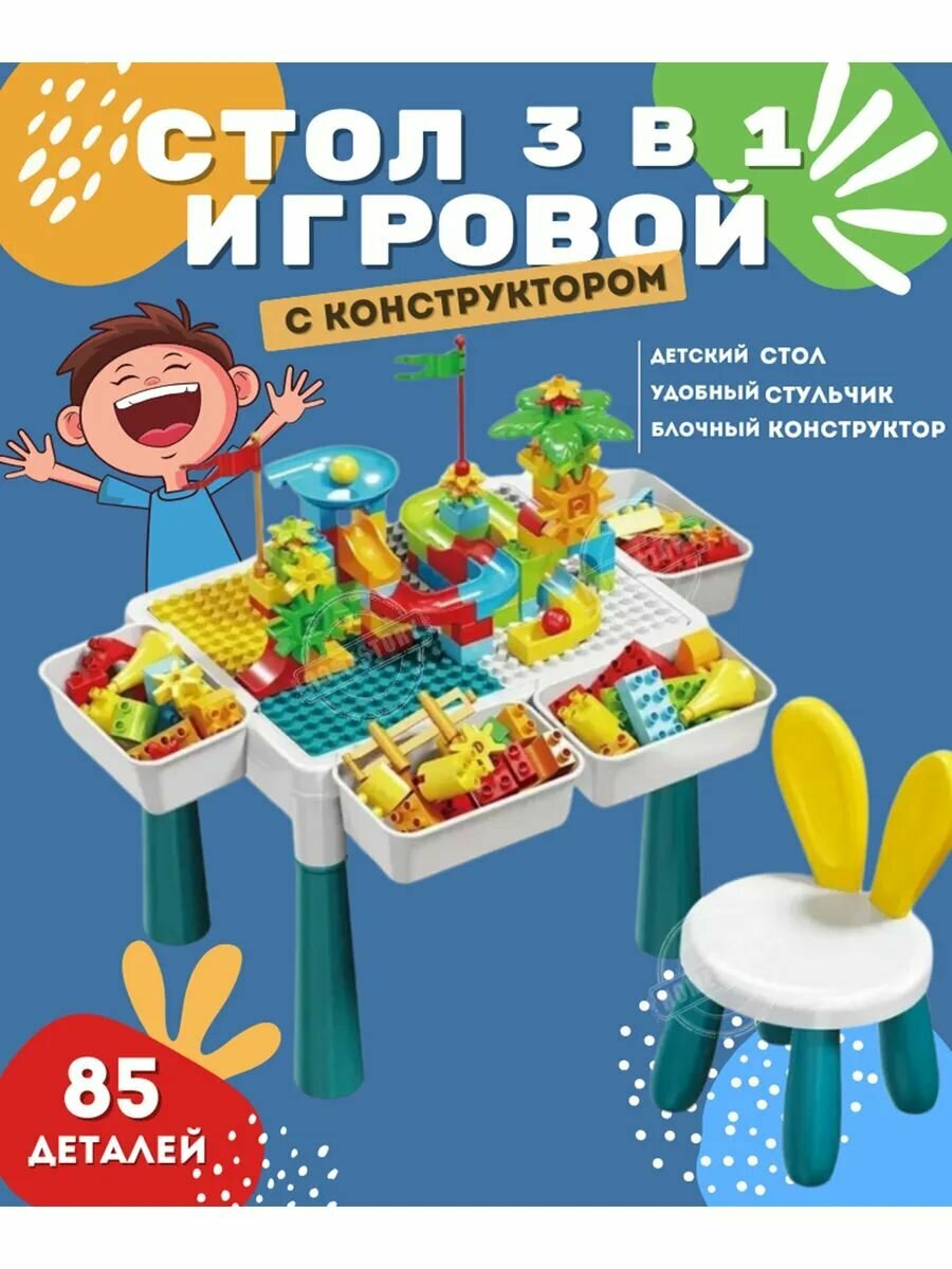 Детский стол с конструктором и стулом, для детей с крупными деталями 85 дет. интересное:
