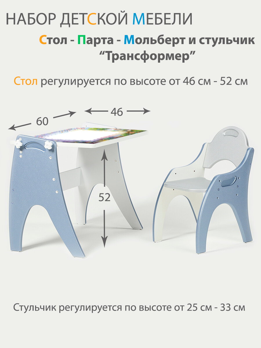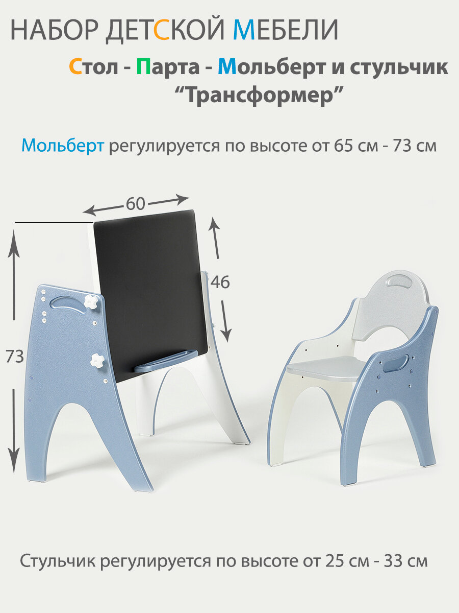 СохранитьРастущий набор детской мебели Стол - Парта - Мольберт и стульчик "Трансформер" цвет Синий интересное: