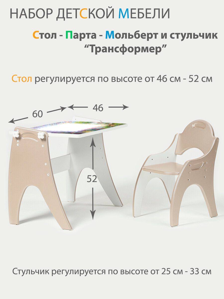 СохранитьРастущий набор детской мебели Стол - Парта - Мольберт и стульчик "Трансформер" цвет Латте интересное:
