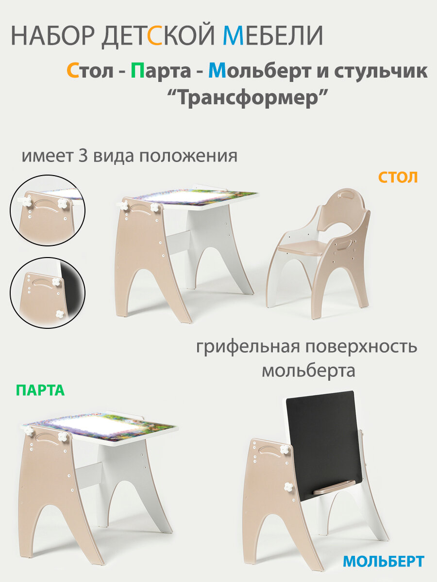 Купить Растущий набор детской мебели Стол - Парта - Мольберт и стульчик "Трансформер" цвет Латте