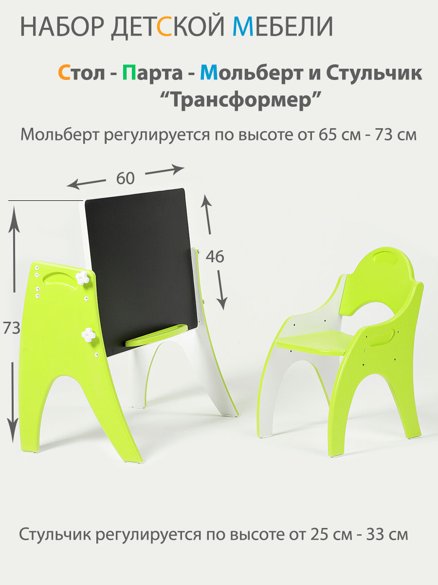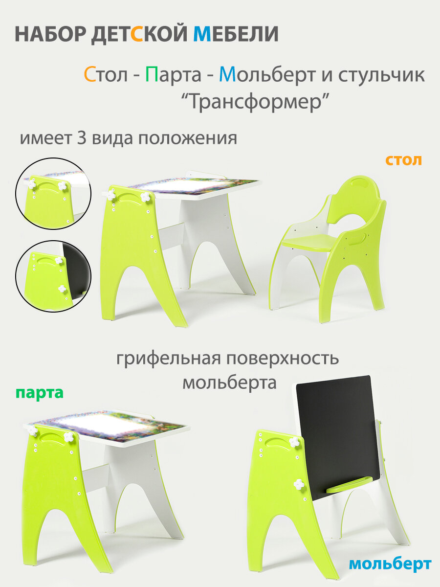 СохранитьРастущий набор детской мебели Стол - Парта - Мольберт и стульчик "Трансформер" цвет Лайм интересное:
