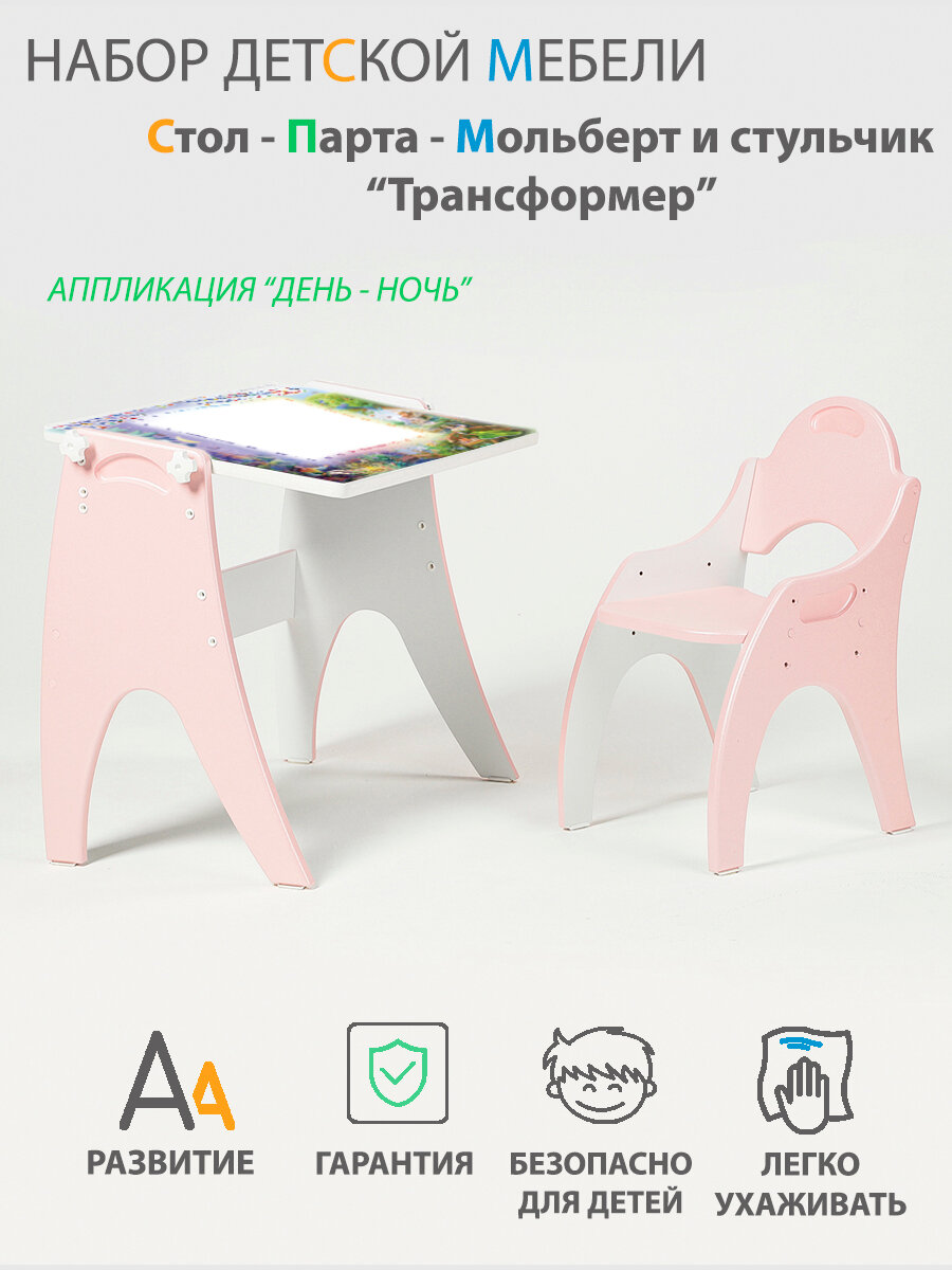СохранитьРастущий набор детской мебели Стол - Парта - Мольберт и стульчик "Трансформер" цвет Розовый интересное: