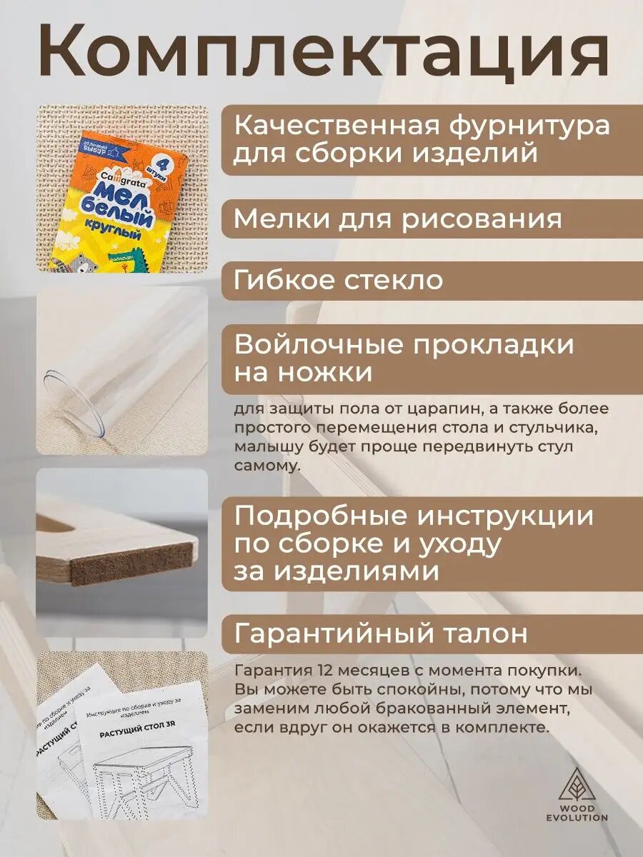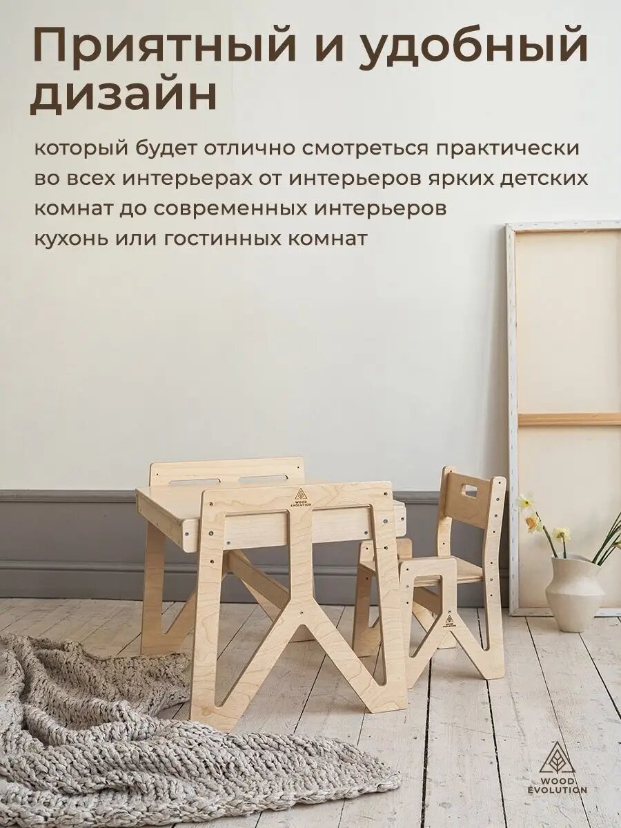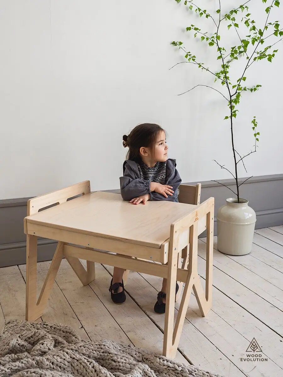 Детский стол и стул - SUNRISE. Растущий набор. Натуральный покрытый лаком. интересное: