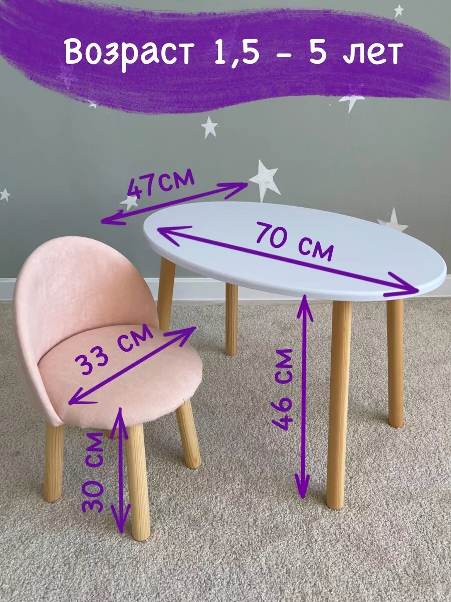 Детский Стол Овал Белый + мягкий Стул Велюр Розовый от DIMDOM kids интересное: