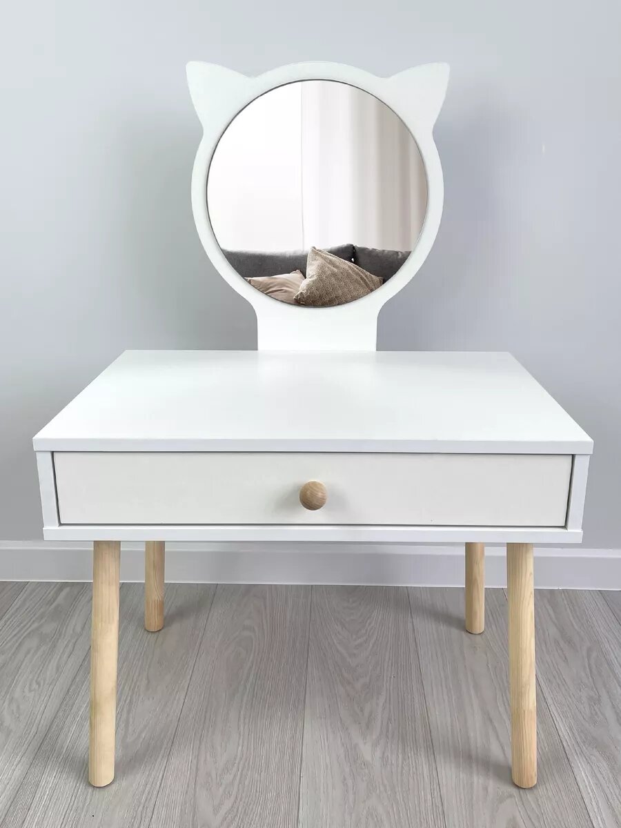 Детский туалетный столик Киска + стул Зайка от DIMDOM Kids, МДФ белый интересное: