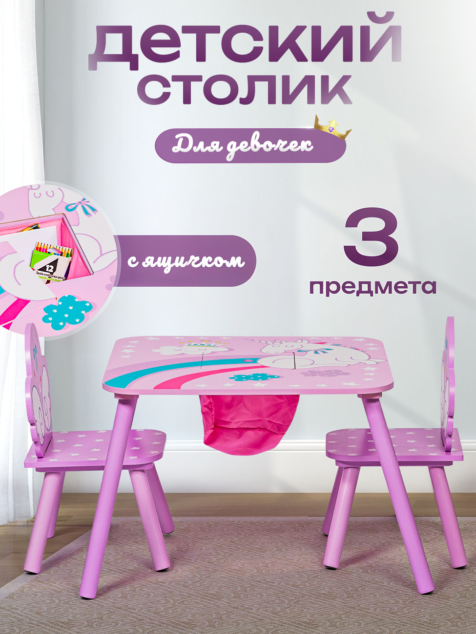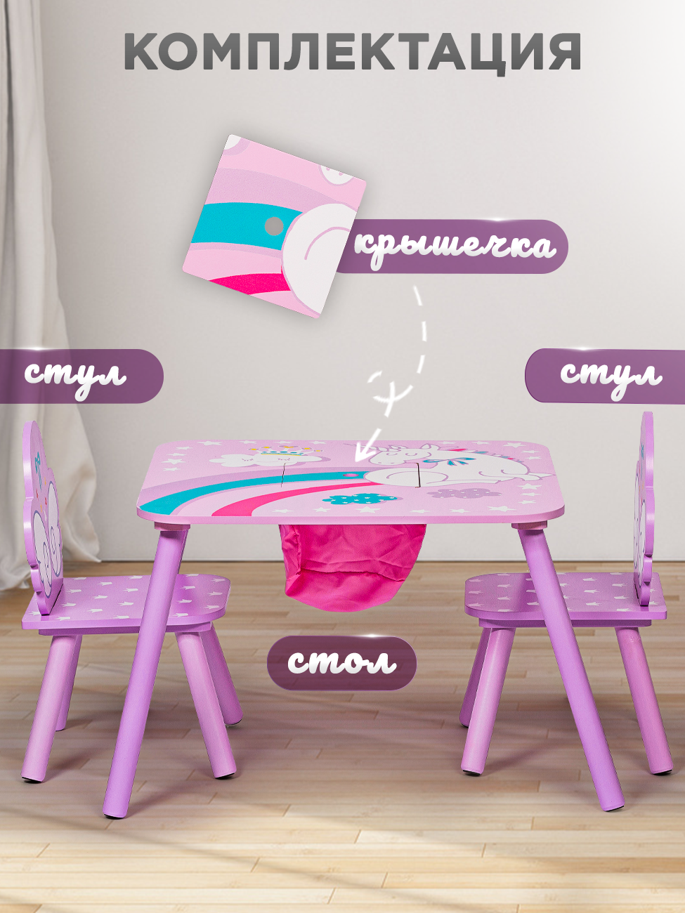 Комплект детской мебели, Стол + 2 стула интересное: