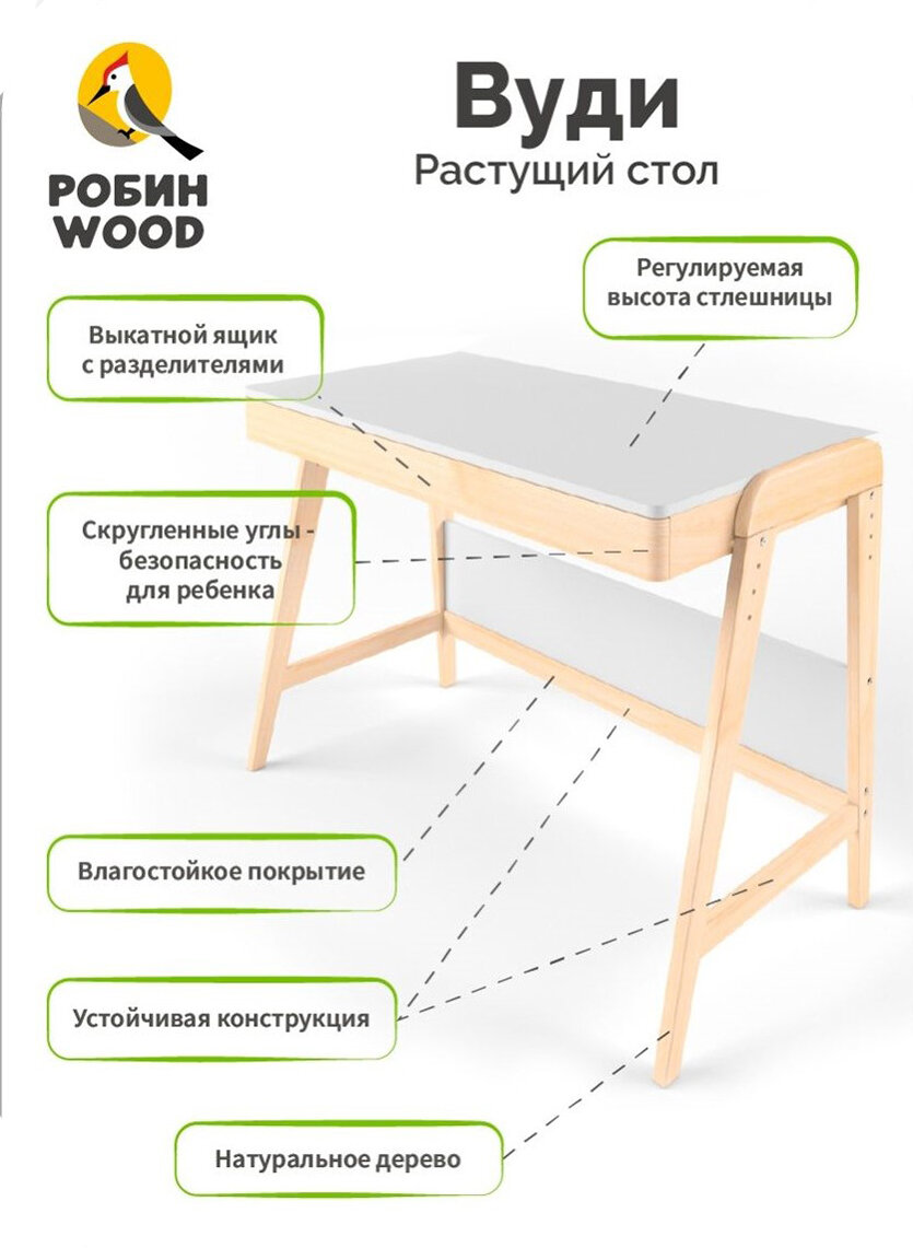 Детский растущий стол Вуди и стул Робин Wood (Комбо Белый/Комбо Белый) интересное: