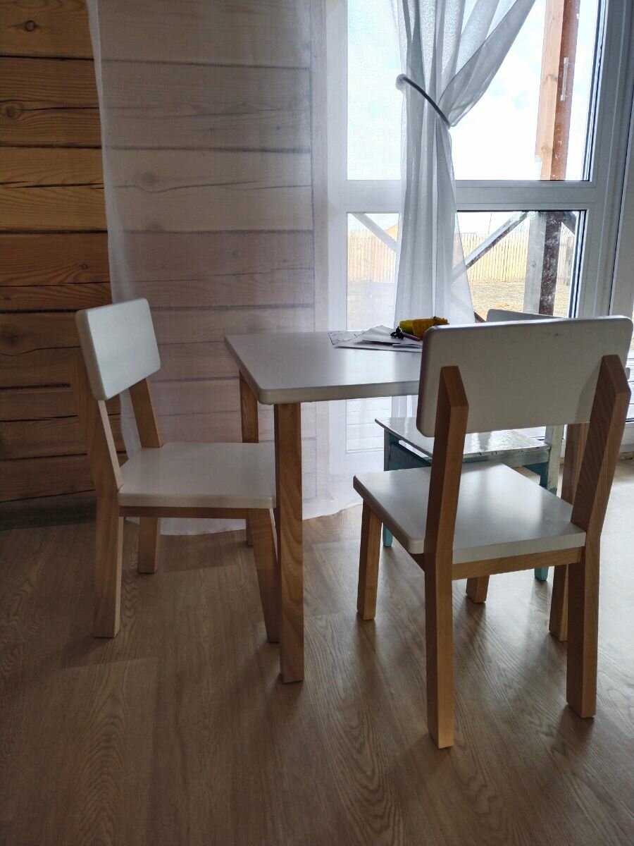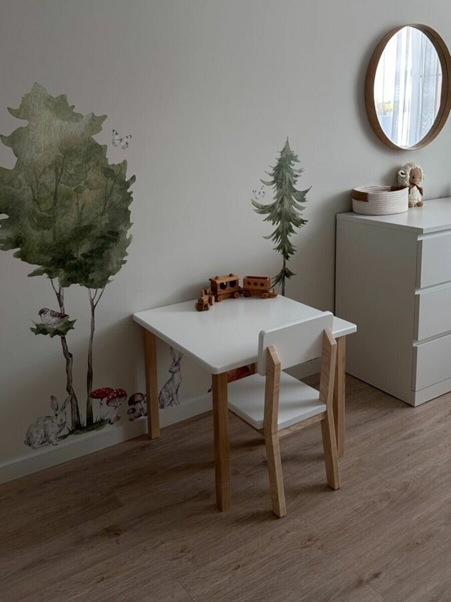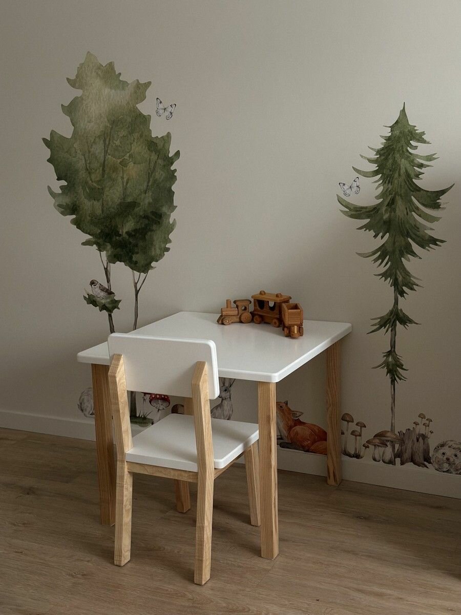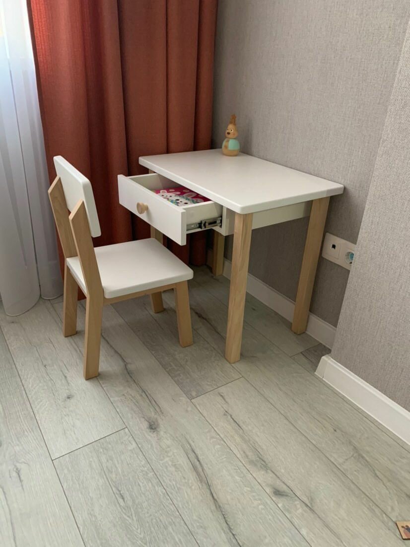 Детский стол FRIT белый для ребенка, малышей от 1 года до 5 лет. Массив ясеня, МДФ, окрашивание интересное: