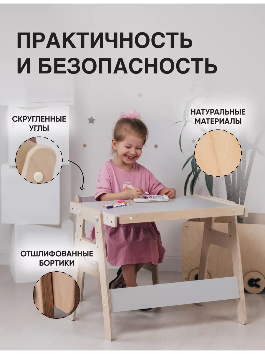 Детский стол и стул KRONLY MANUFACTORY, детская мебель для малышей, ЛДСП/фанера береза, цвет серый интересное: