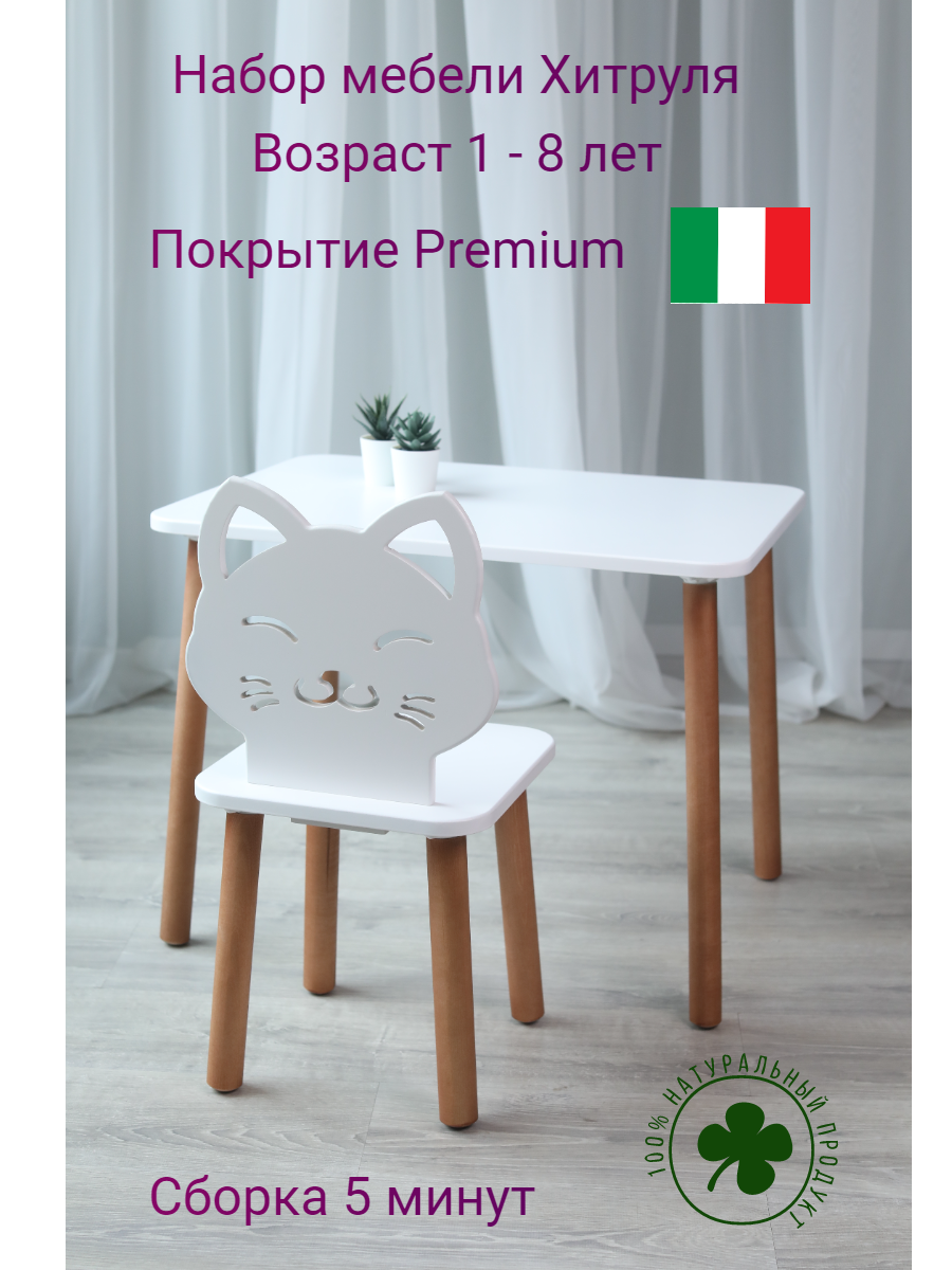 Набор детской мебели Хитруля, белоснежный, окрас Premium. интересное: