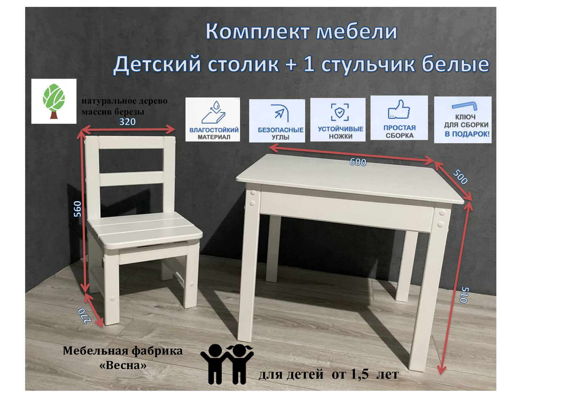 Комплект детской мебели столик+ 1 стульчик массив березы белые интересное: