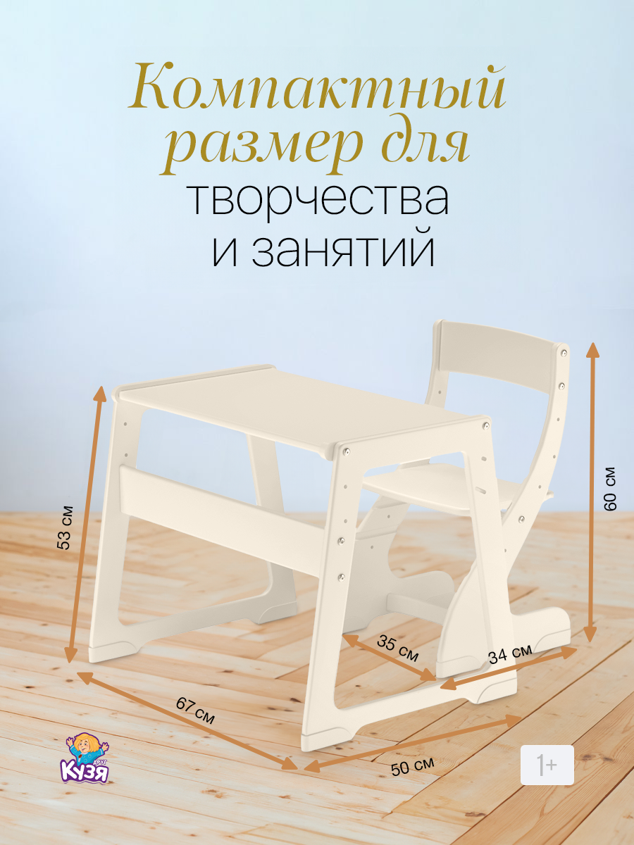 Купить Комплект растущей мебели, детский стул и стол Друг Кузя слоновая кость подушечка звезды