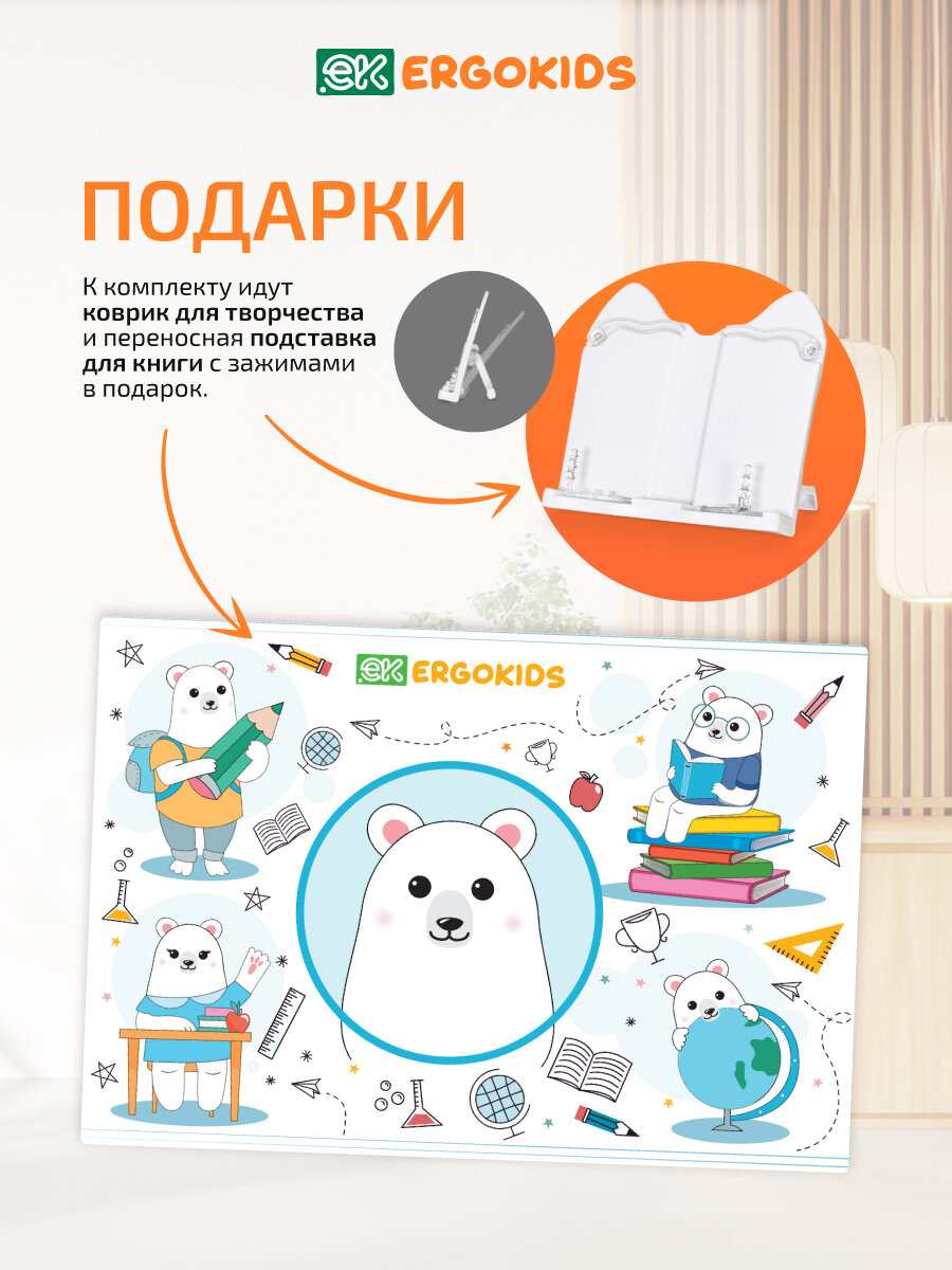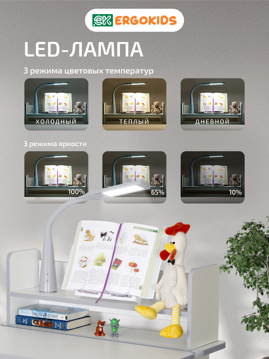 Детский растущий комплект для школьников Ergokids Kitty BD-24 серый с лампой интересное: