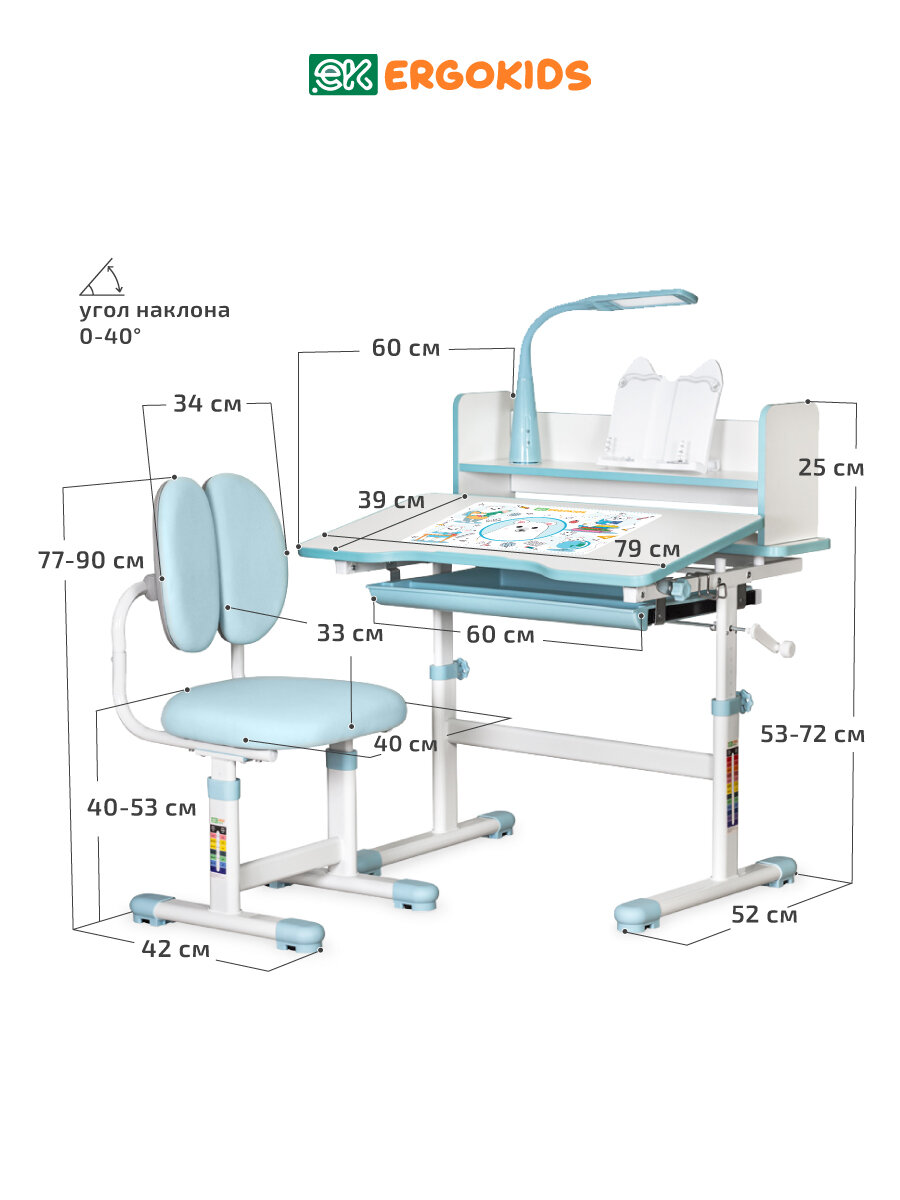 Купить Детский растущий комплект для школьников Ergokids Kitty BD-24 голубой с лампой