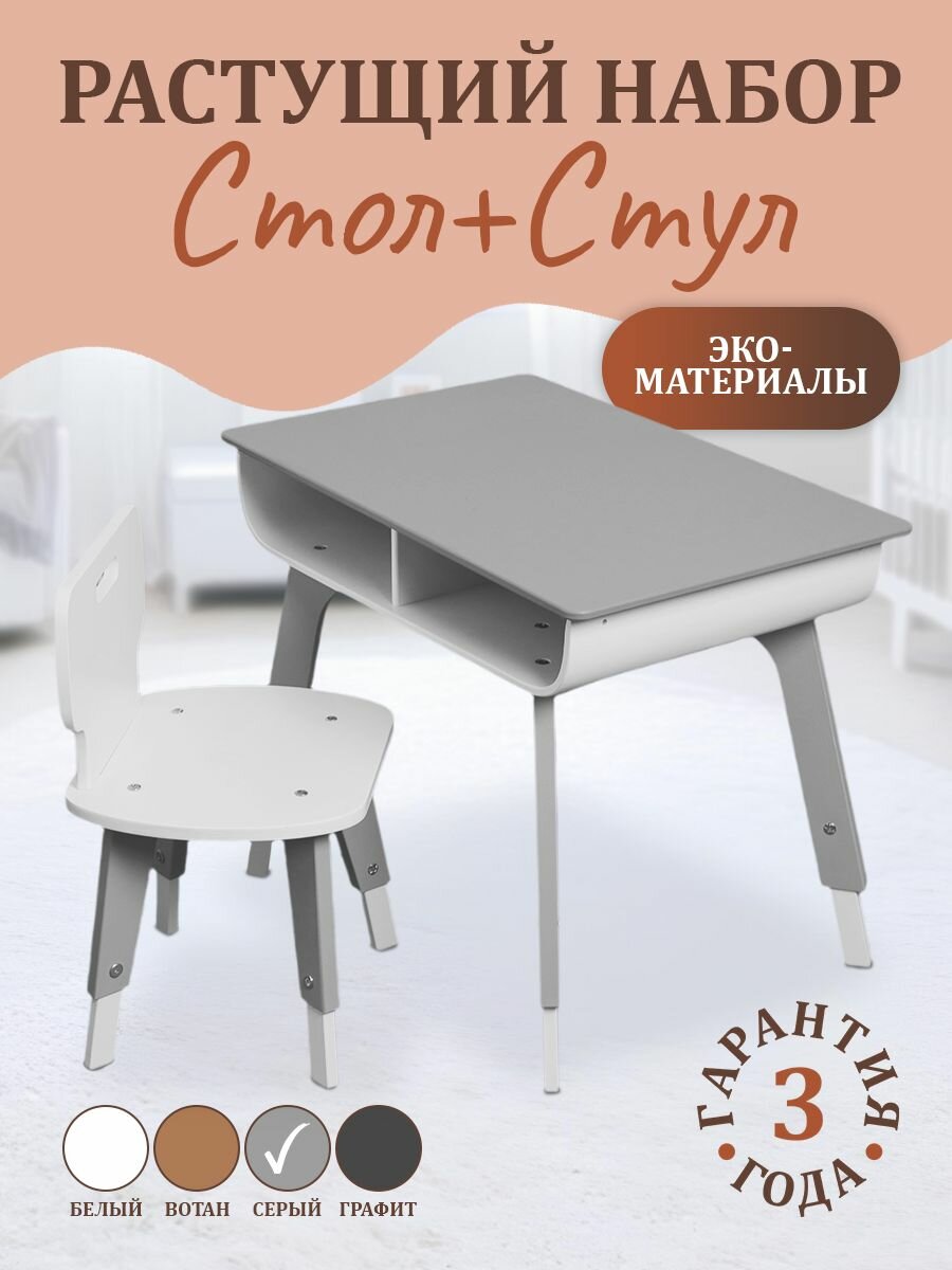 Стол и стул "Растущая мебель", для малышей, 67x44x51 см, серый интересное: