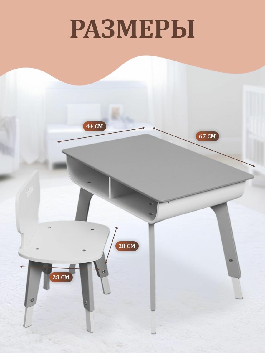 Купить Стол и стул "Растущая мебель", для малышей, 67x44x51 см, серый
