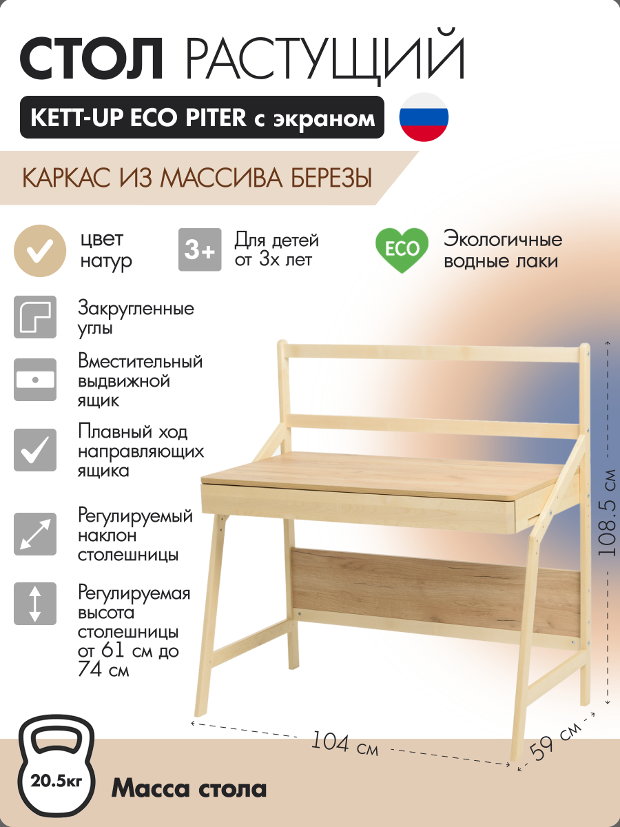 Ниже Вы можете прочитать отзывы на Стол растущий KETT-UP ECO PITER с экраном натур / дуб, ознакомится с подробными характеристиками, посмотреть интересные обзоры и фотографии на Стол растущий KETT-UP ECO PITER с экраном натур / дуб.