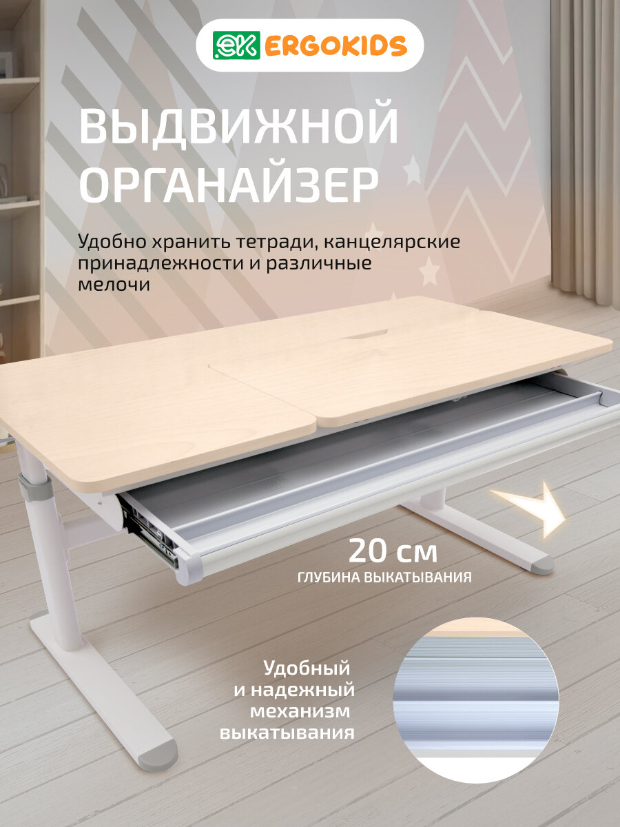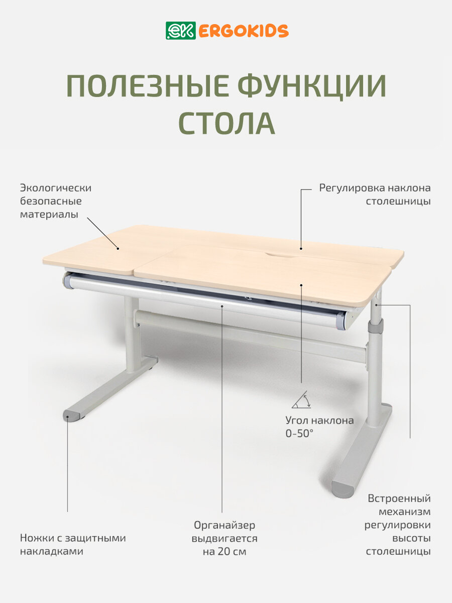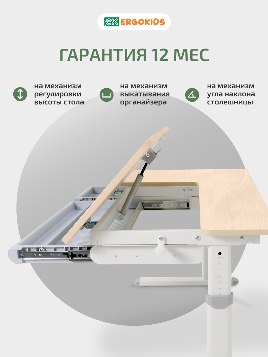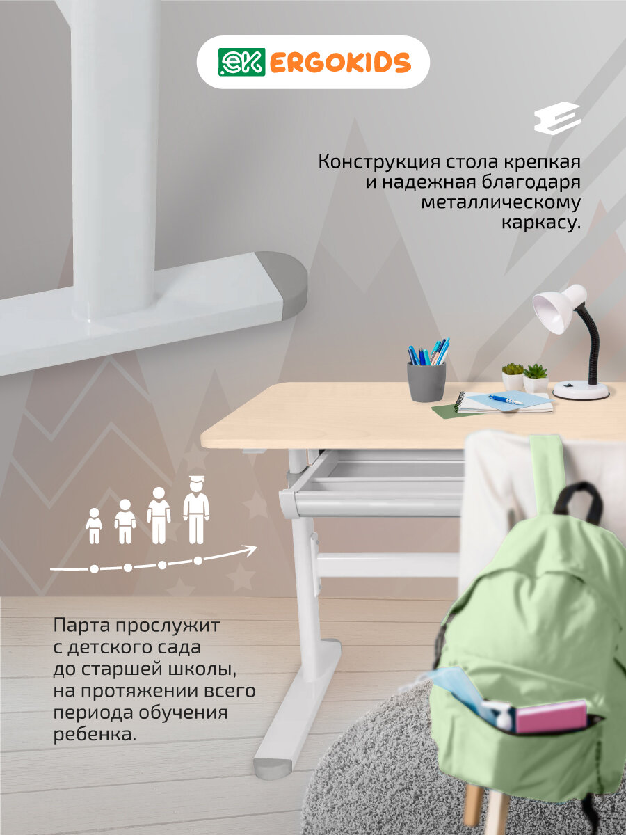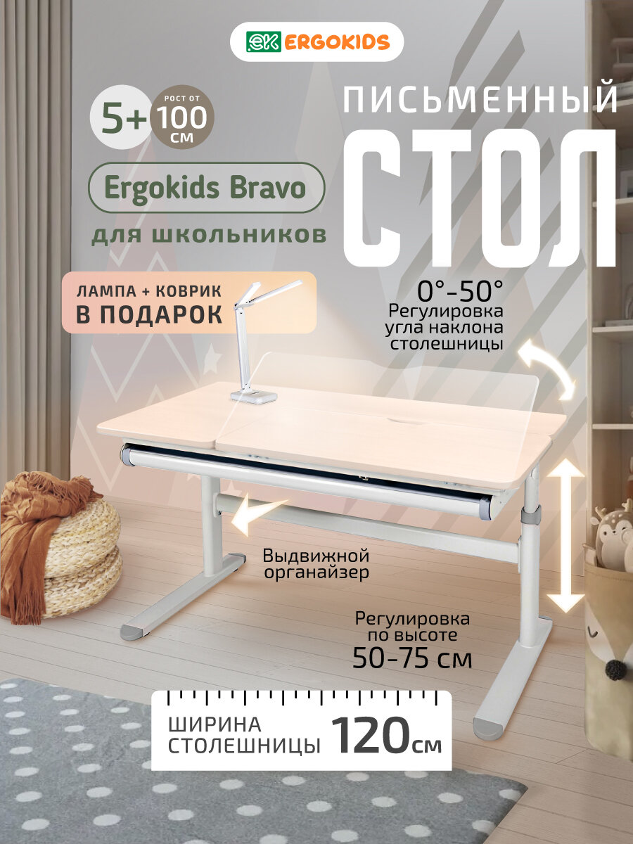 Стол письменный для школьника растущий с лампой Bravo Maple/Grey (арт. TH-360 Lite MG/G) ширина столешницы 120 см МДФ интересное: