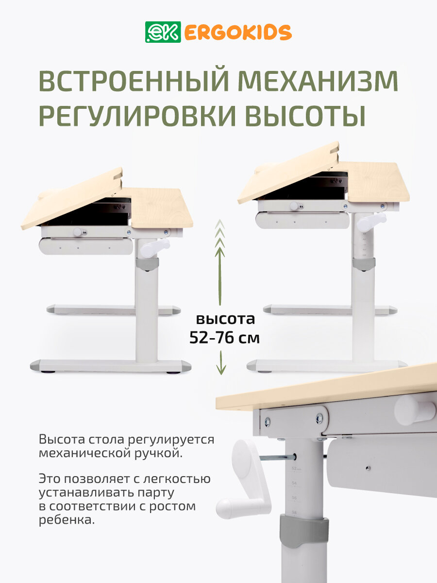 Растущая парта для школьника Rumbik Smart серая, детский деревянный письменный стол с регулировкой высоты