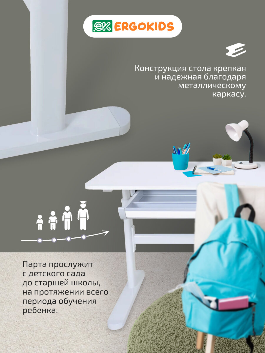 Купить Cтол письменный парта для школьника Ergokids Boston TH-210L белый