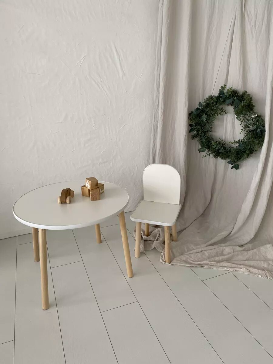 Комплект мебели "Классика" от Мастерской Теремок, детский, круглый, стол и стул, 56 x 56 x 48/26 x 25 x 46 интересное: