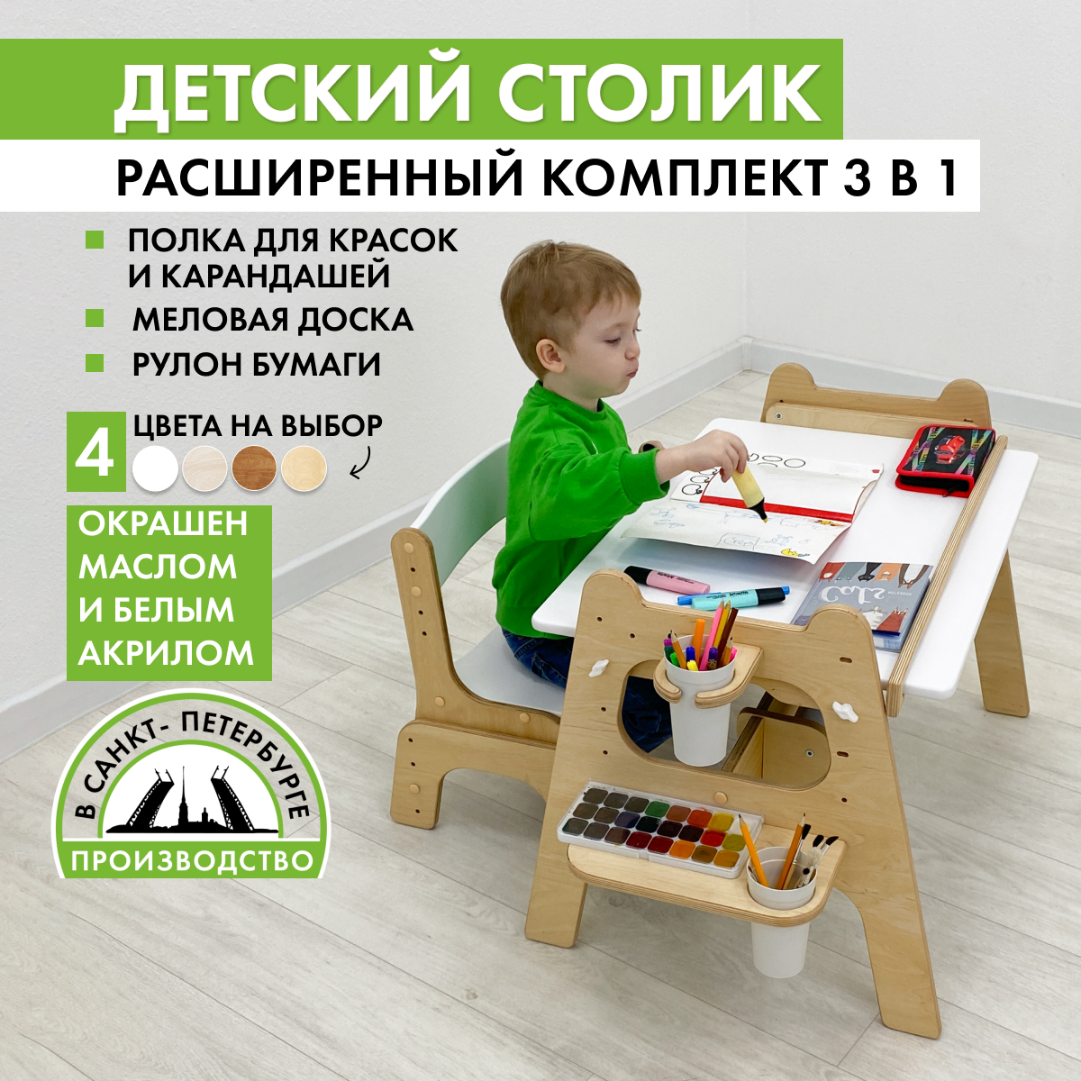 Стол детский Малышок - парта трансформер, прозрачное масло и белый акрил интересное: